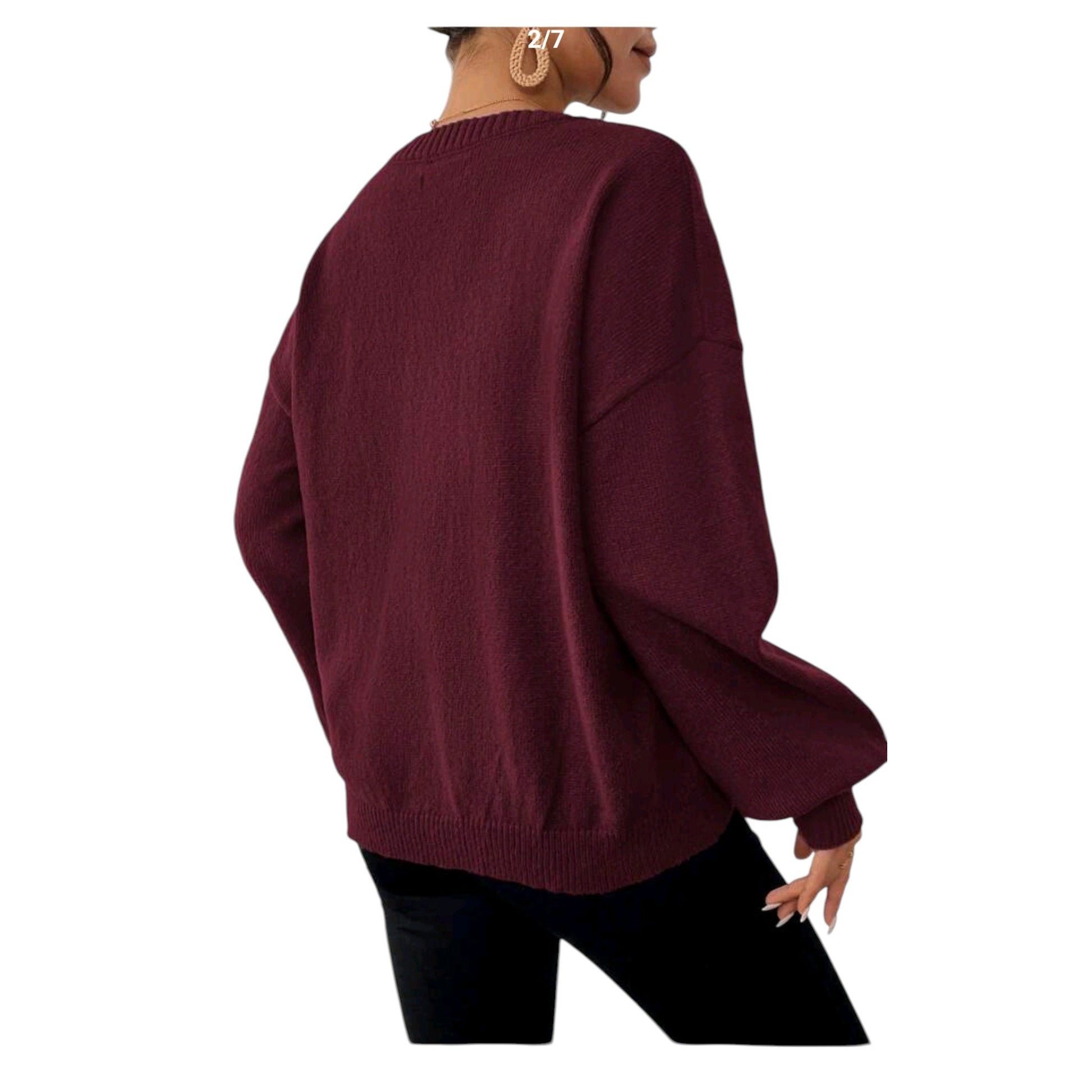 Címke nélküli, bordó, V-nyakú, hosszú ujjú.