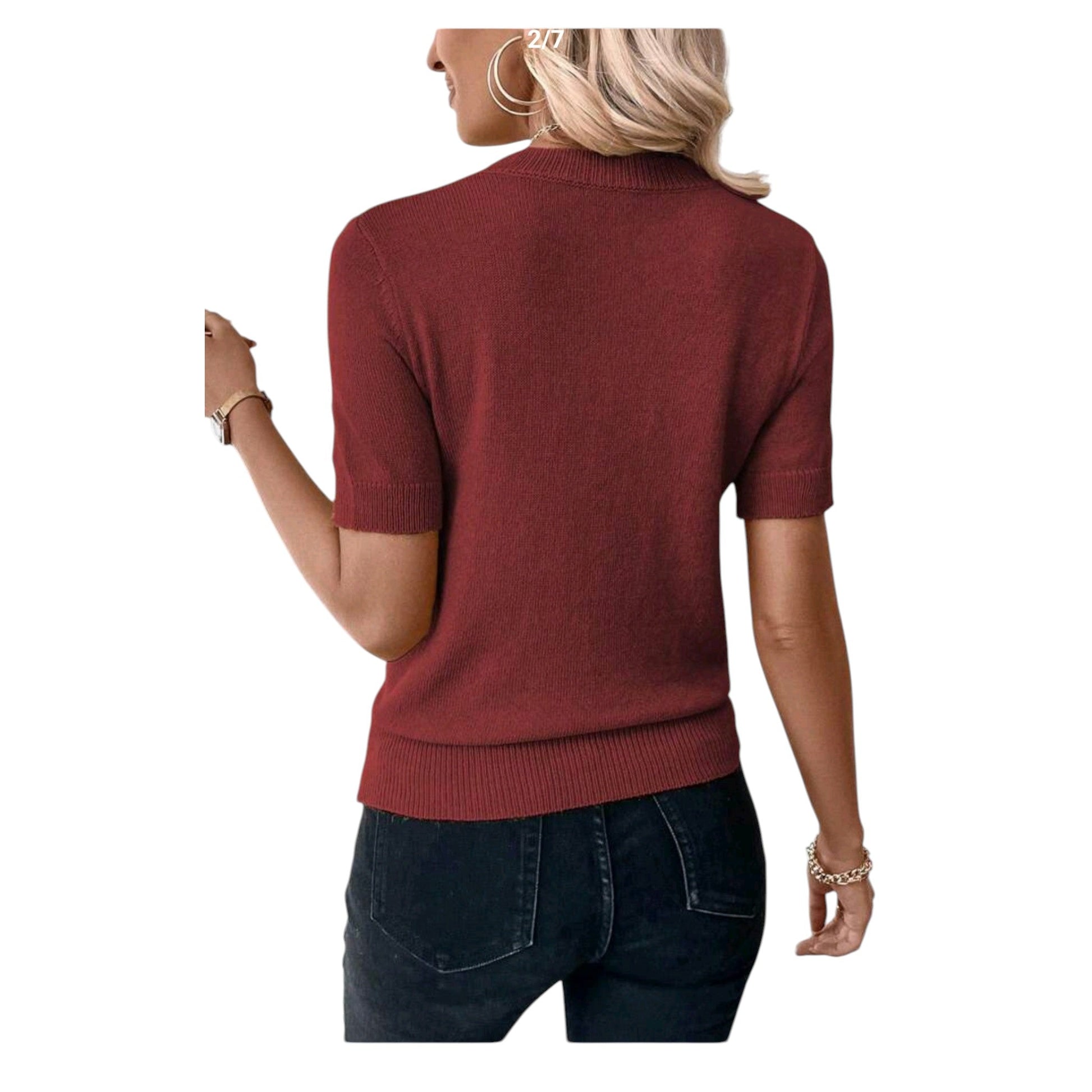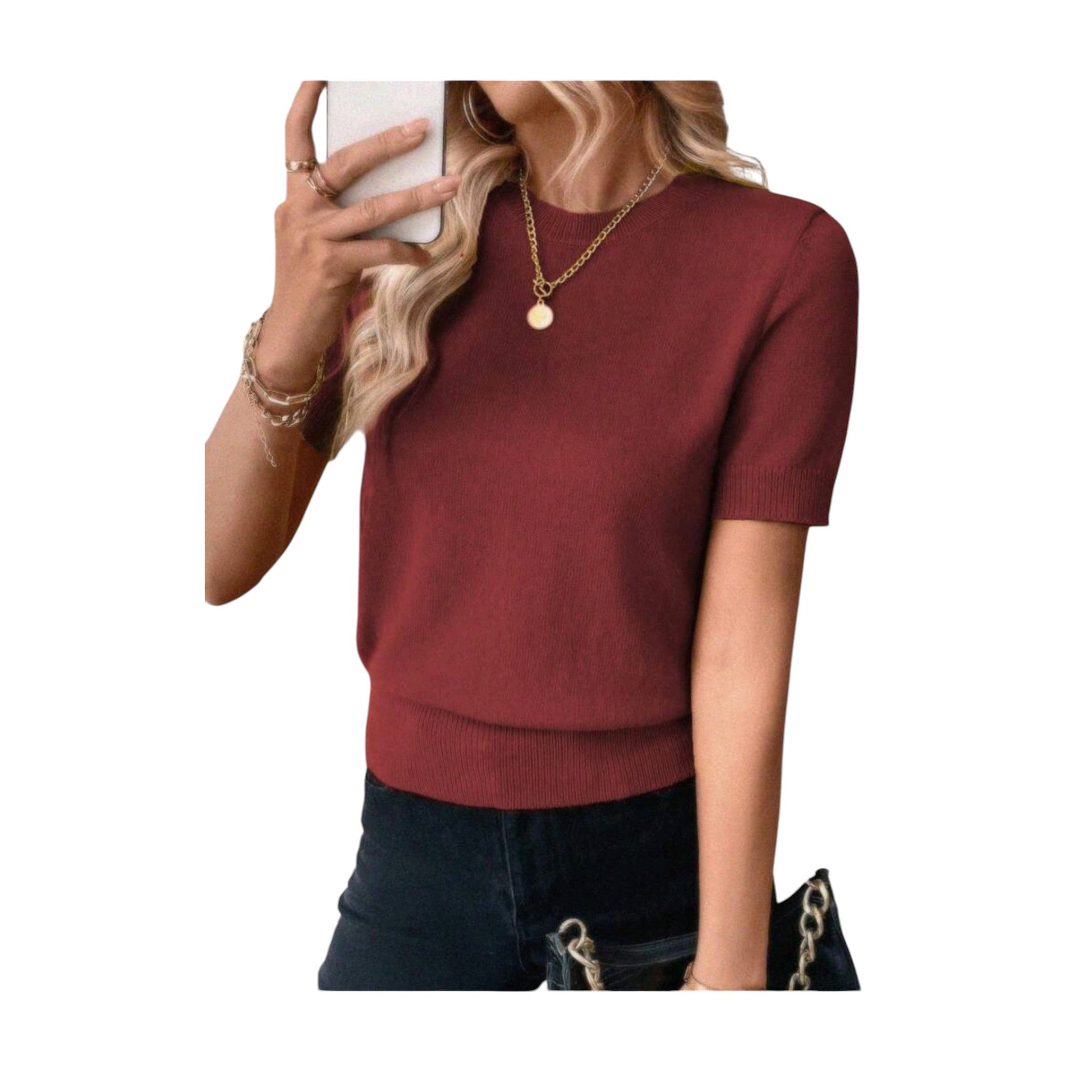 Címke nélküli, bordó, rövid ujjú, kerek nyakú.