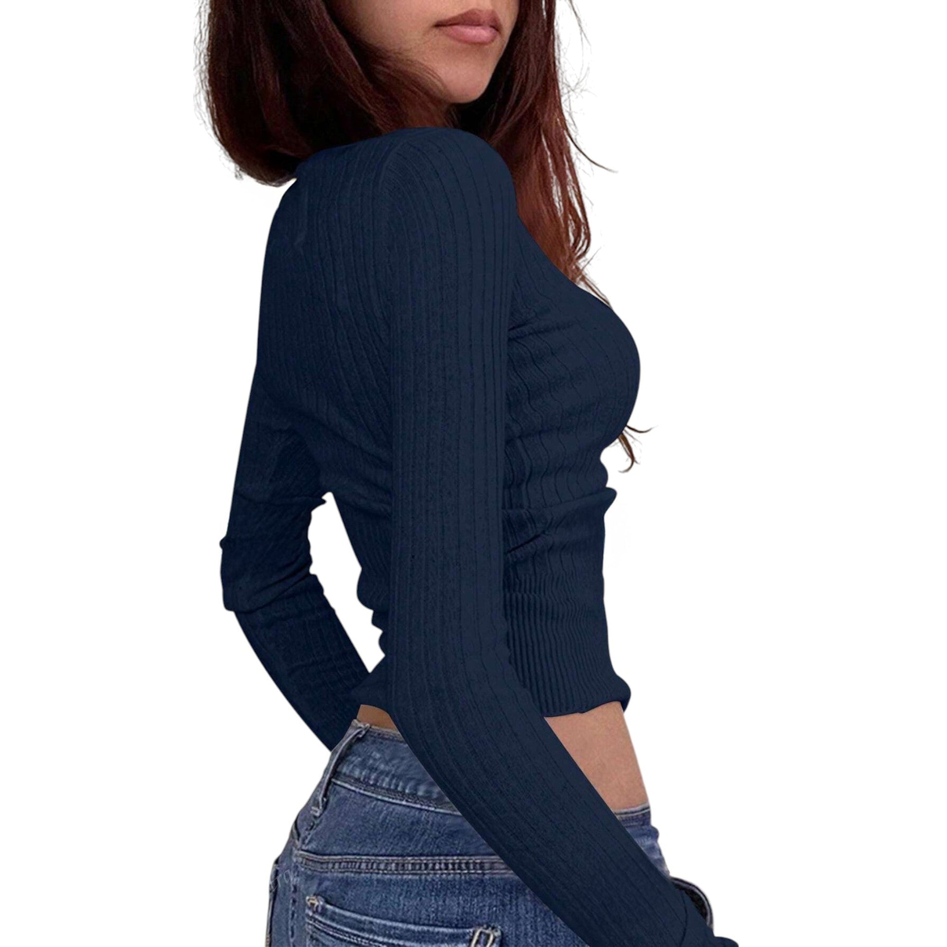 Címke nélküli, sötétkék, szív alakú nyakkivágású, hosszú ujjú, gombos, bordázott.