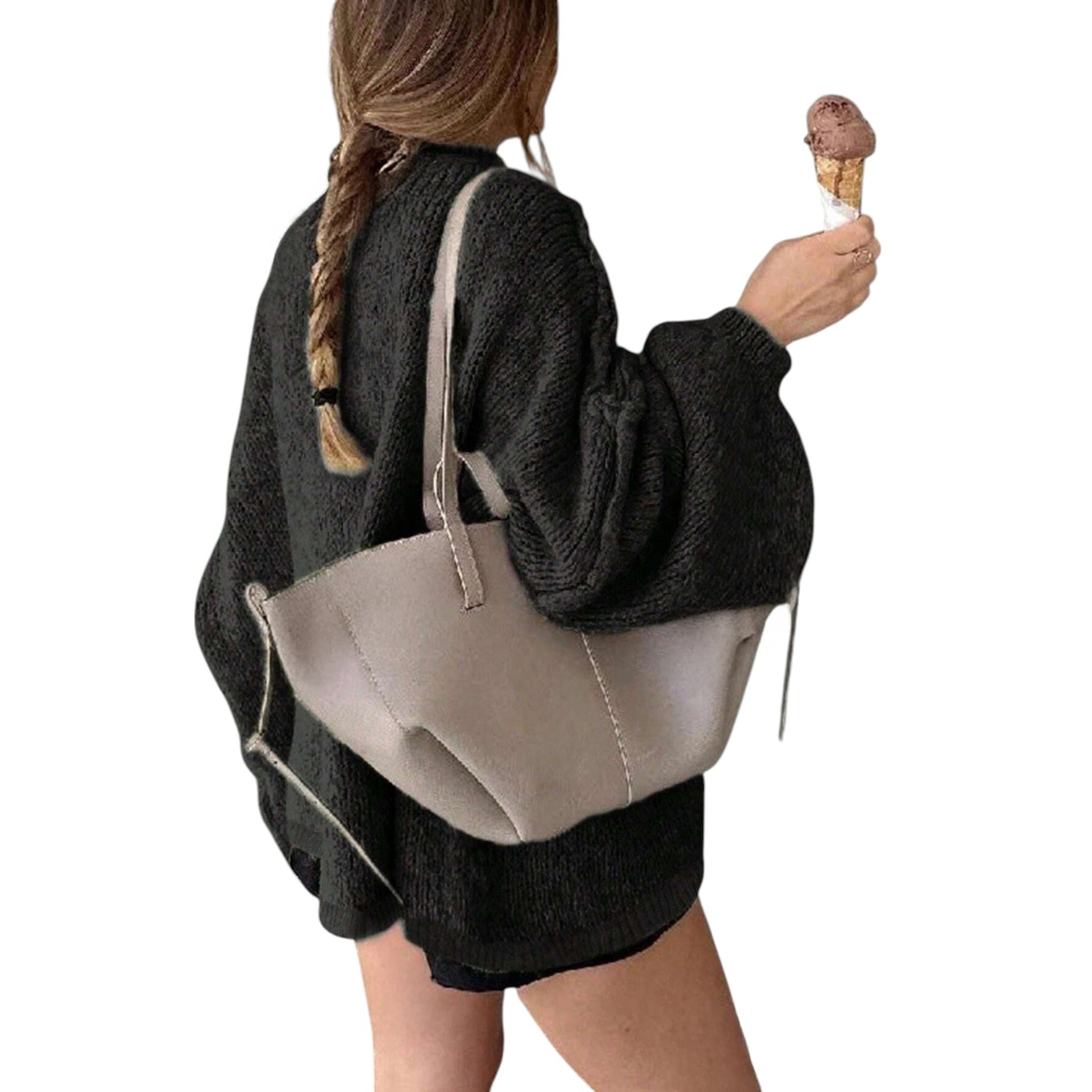 Címke nélküli, fekete, hosszú ujjú, garbó nyakú, bő szabású, kötött, mini.