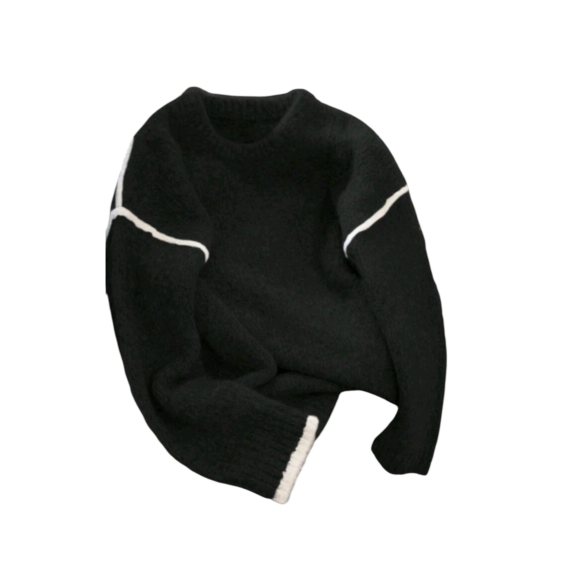 Címke nélküli, fekete, fehér szegéllyel, hosszú ujjú, kerek nyakú.