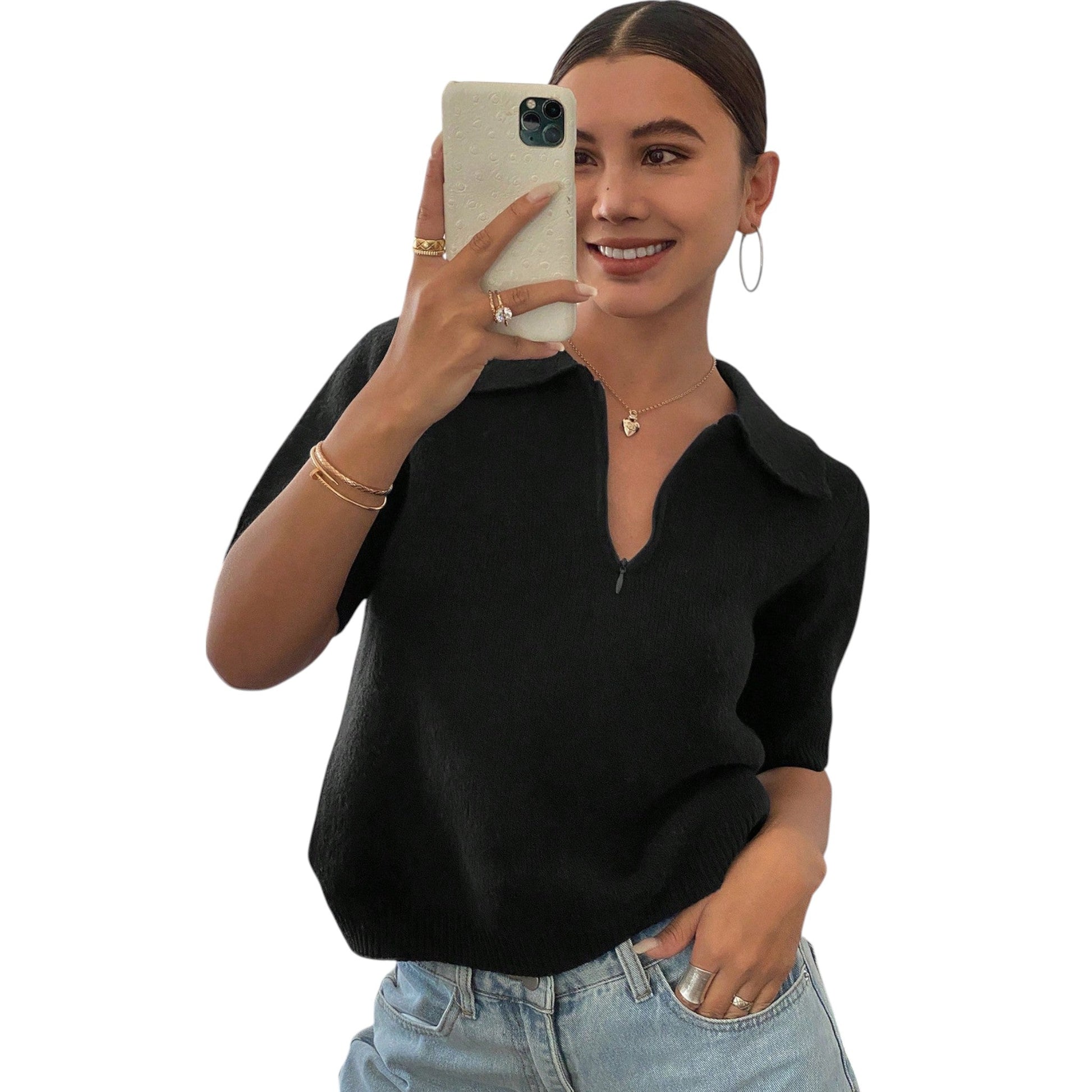 SHE fekete galléros cipzáros póló