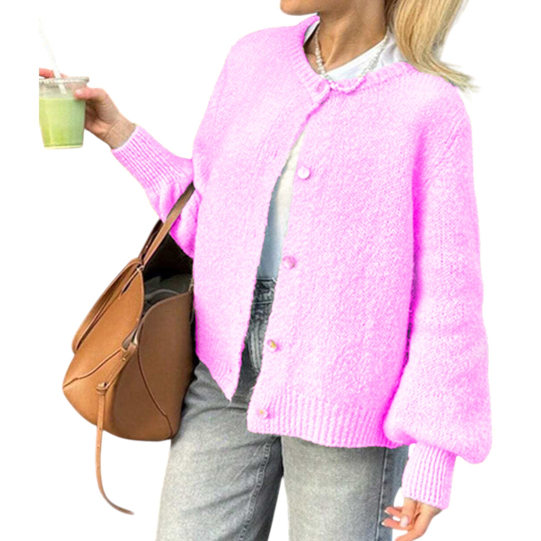 Címke nélküli, rózsaszín, kötött, hosszú ujjú, gombos kardigán, kerek nyakú, bő ujjal.