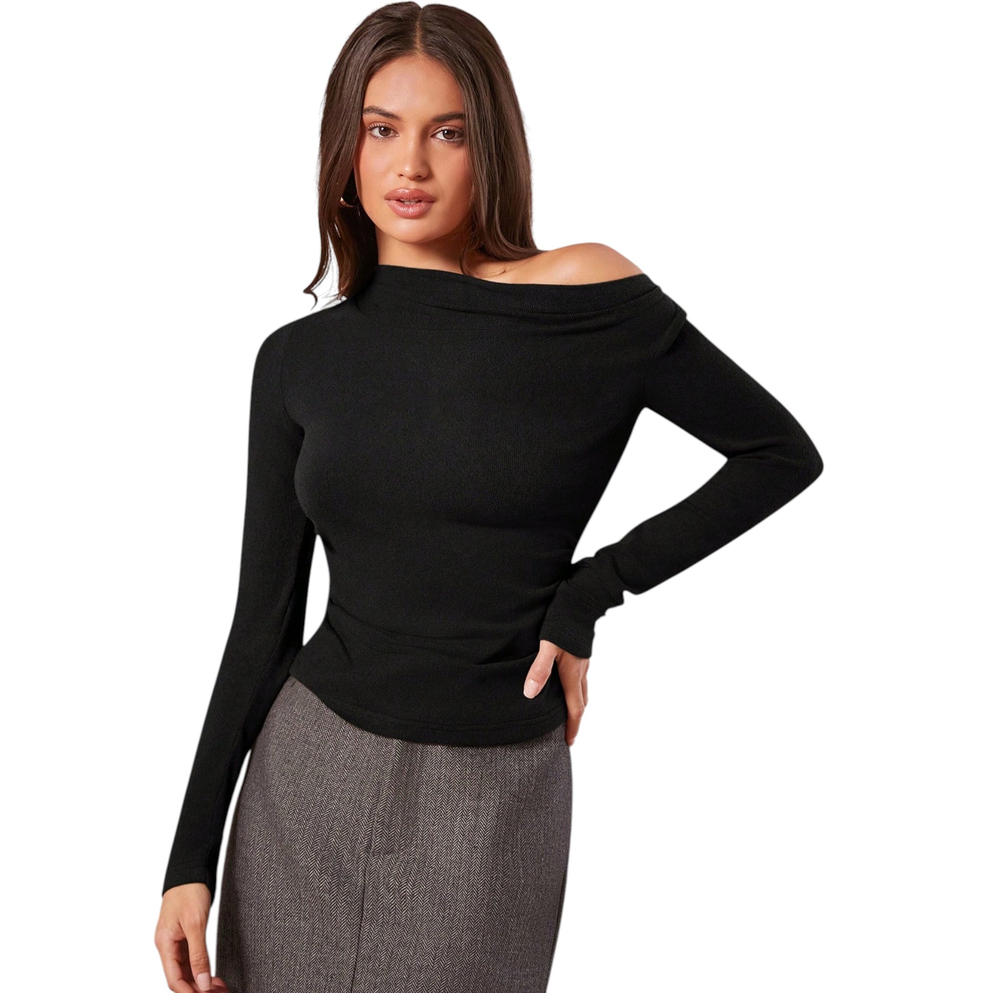 Címke nélküli, fekete, hosszú ujjú, aszimmetrikus, garbószerű nyakú.