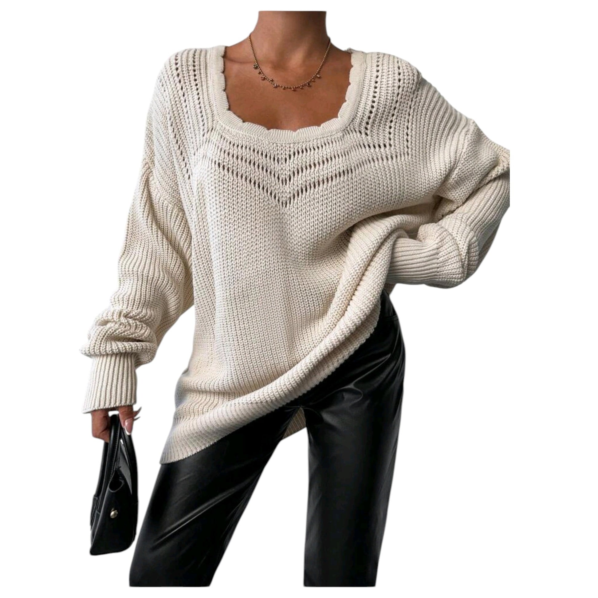 Címke nélküli, ekrü, kerek nyakú, hosszú ujjú, oversize kötött pulóver.