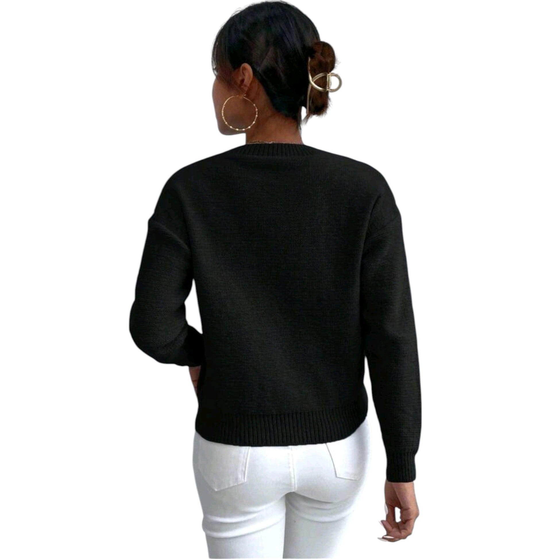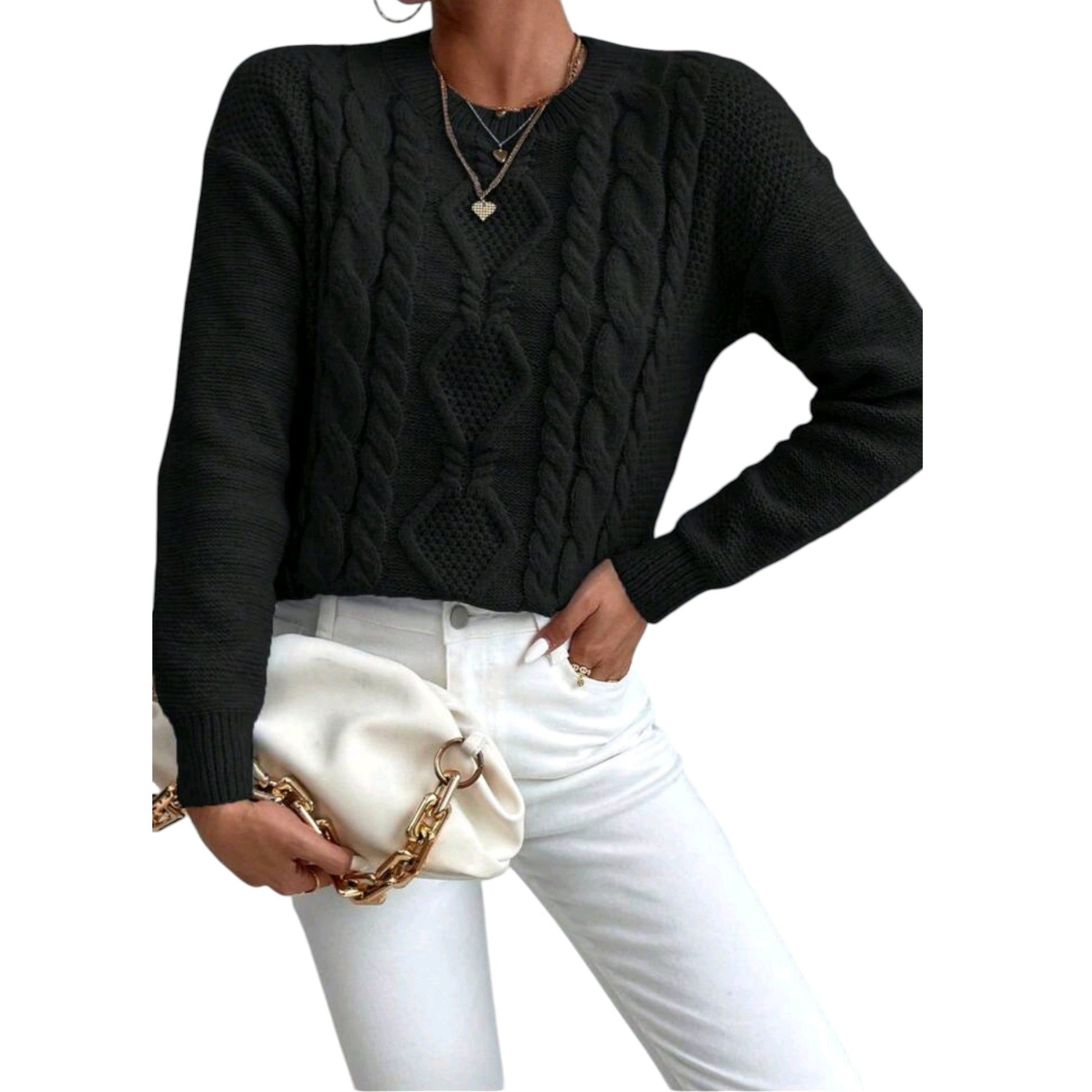 SHE fekete kábelkötéses pulóver