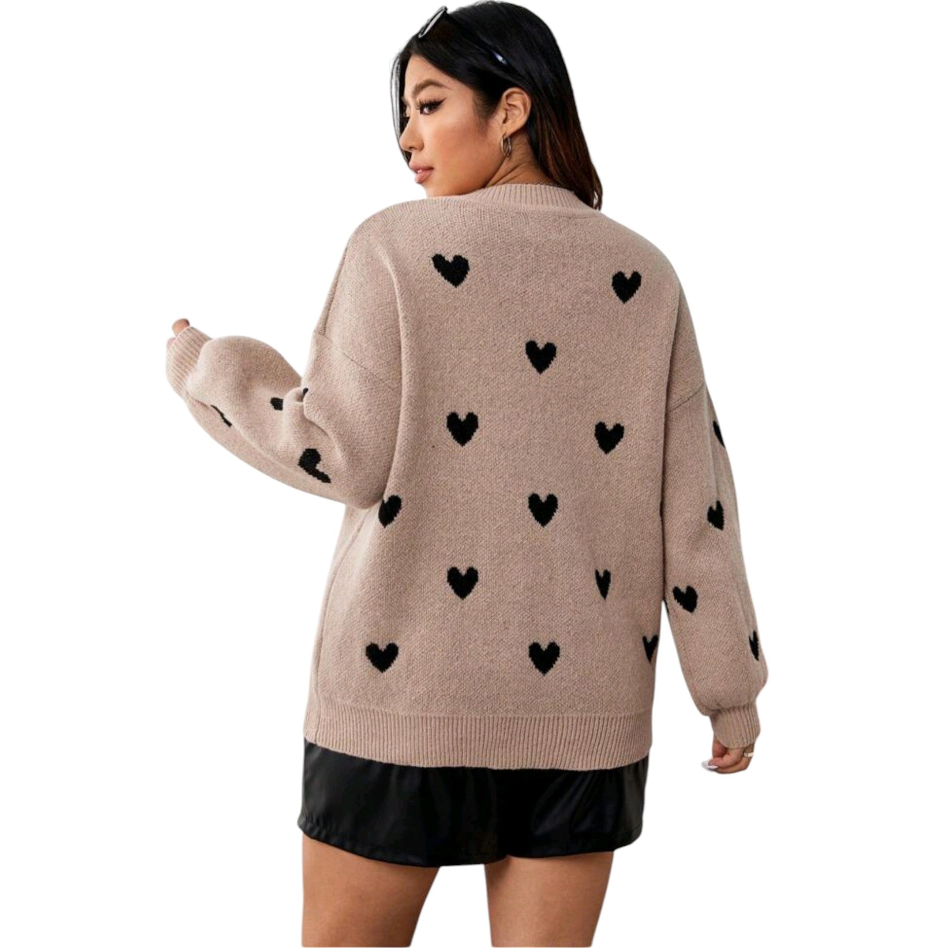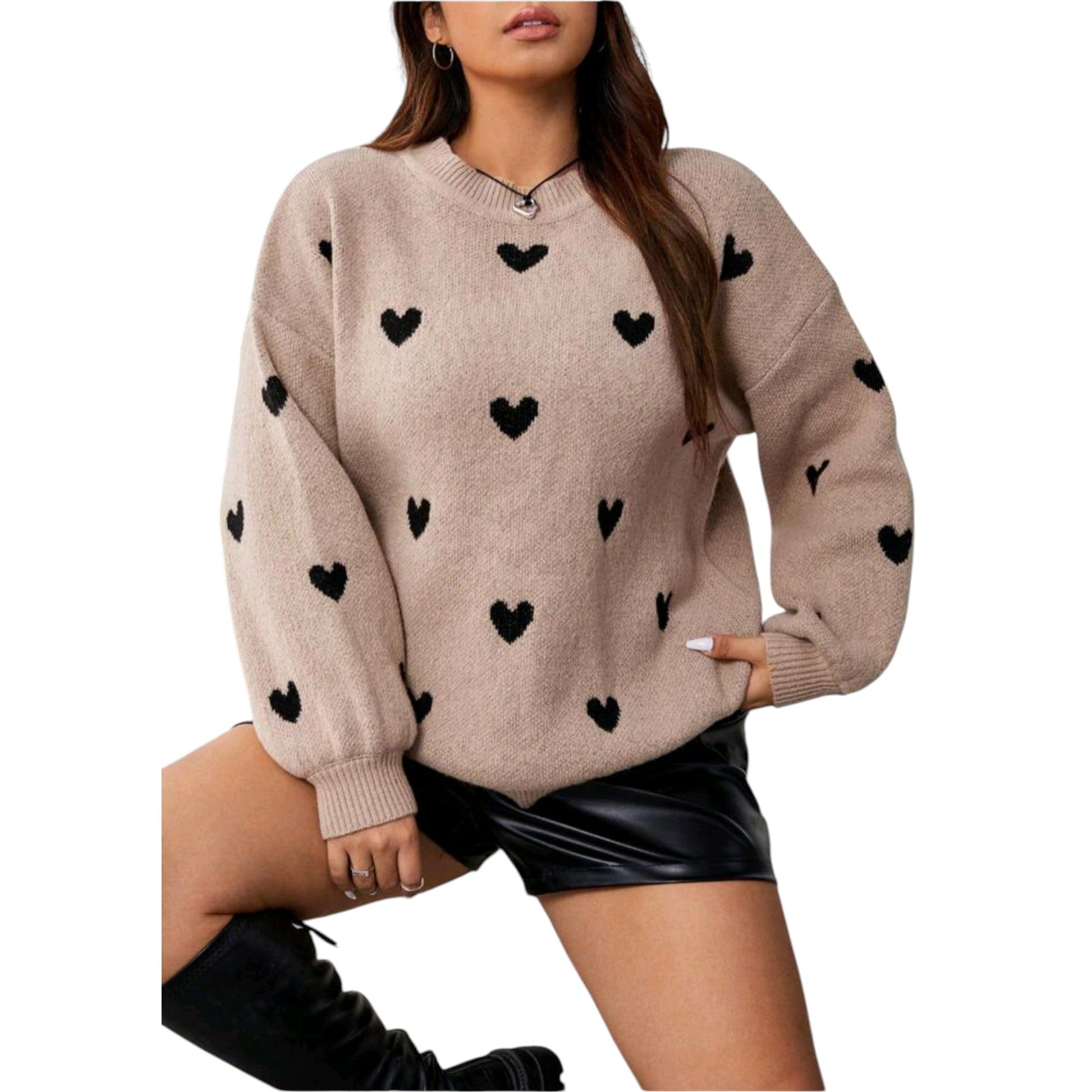 SHE bézs szív mintás kötött pulóver