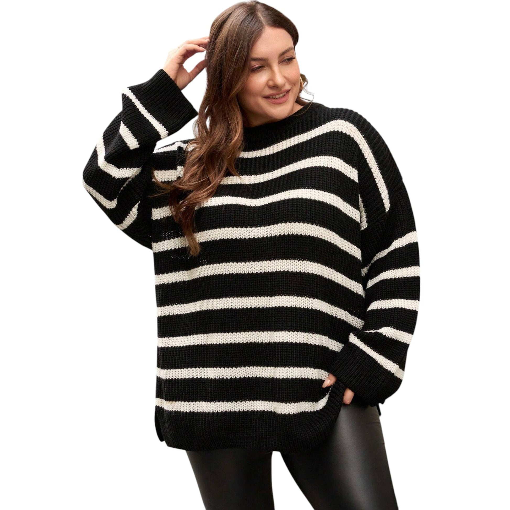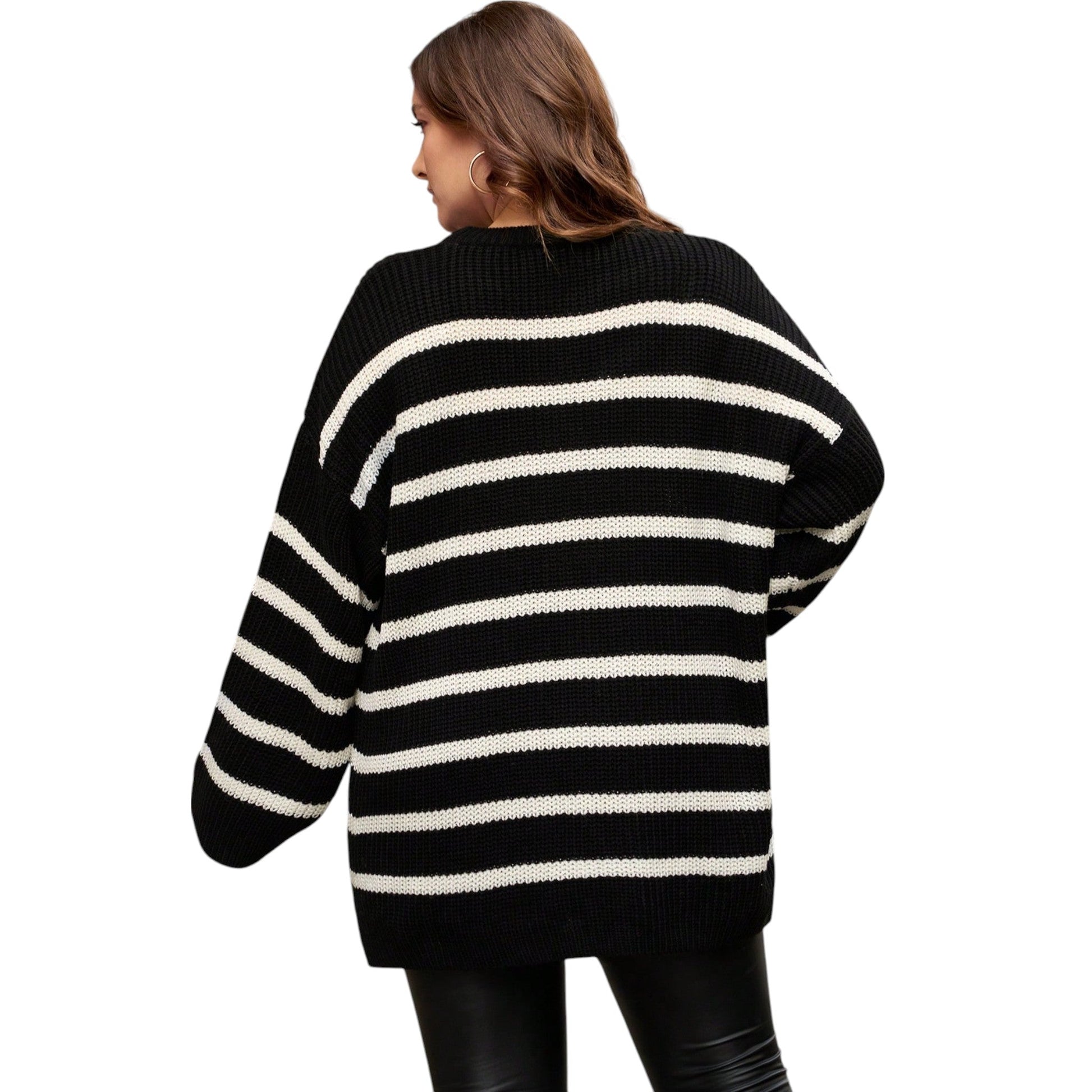 SHE fekete csíkos kötött pulóver