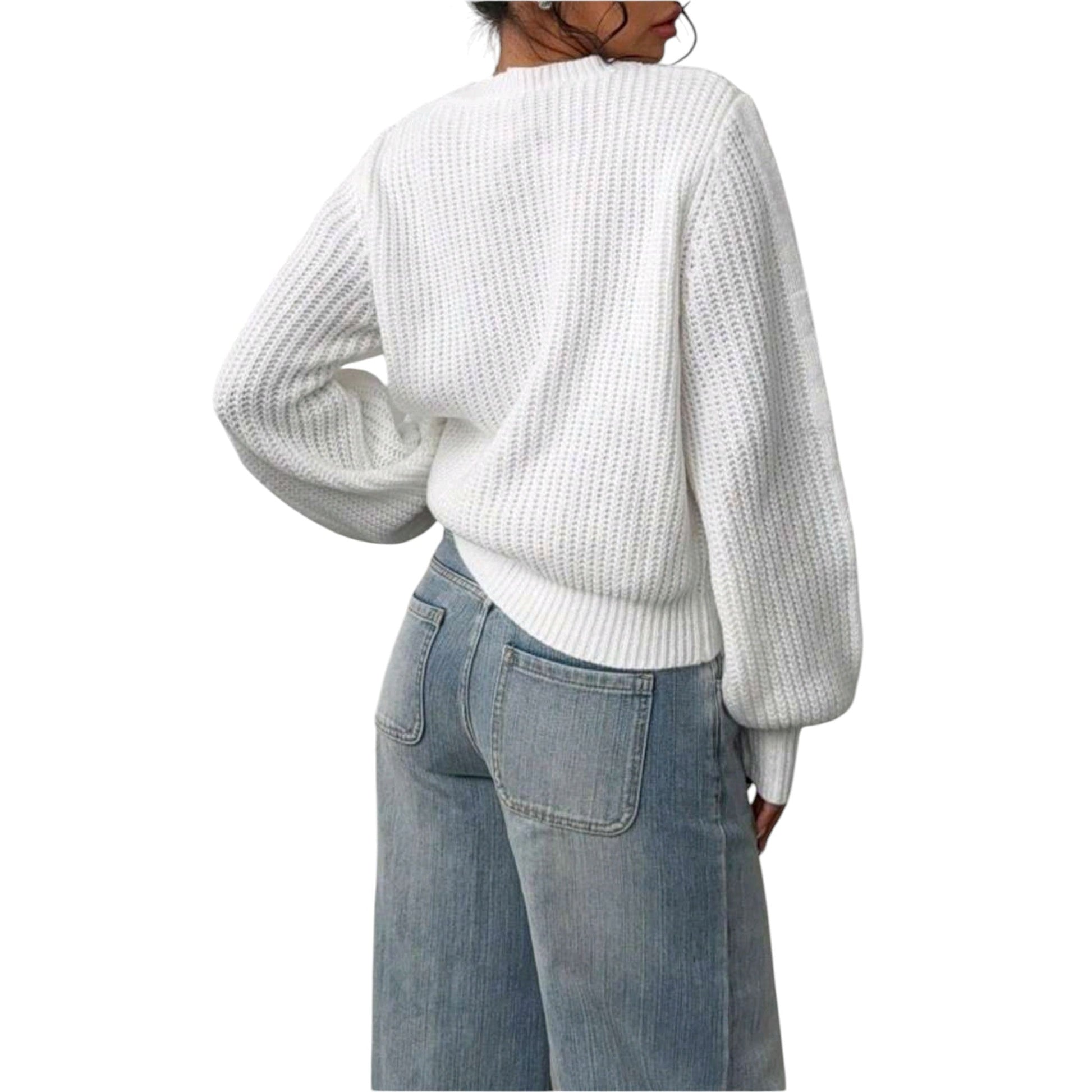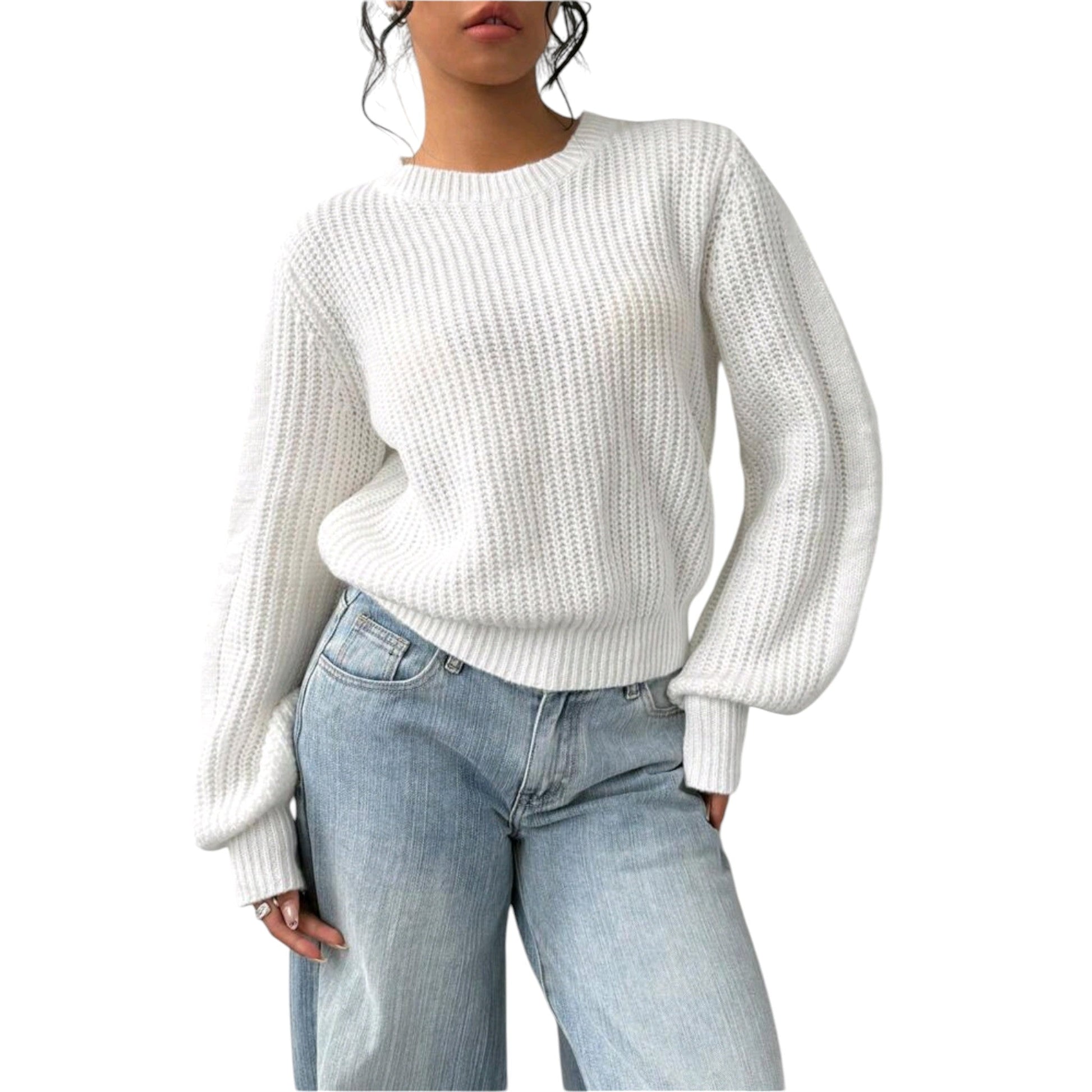 Címke nélküli, ekrü, kötött, kerek nyakú, hosszú ujjú, oversize