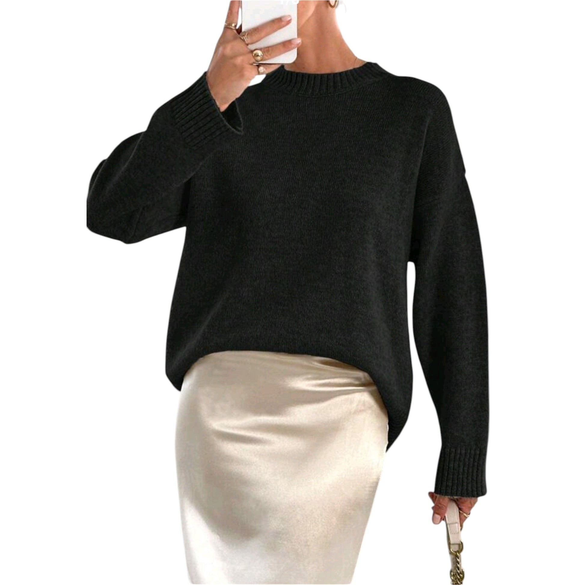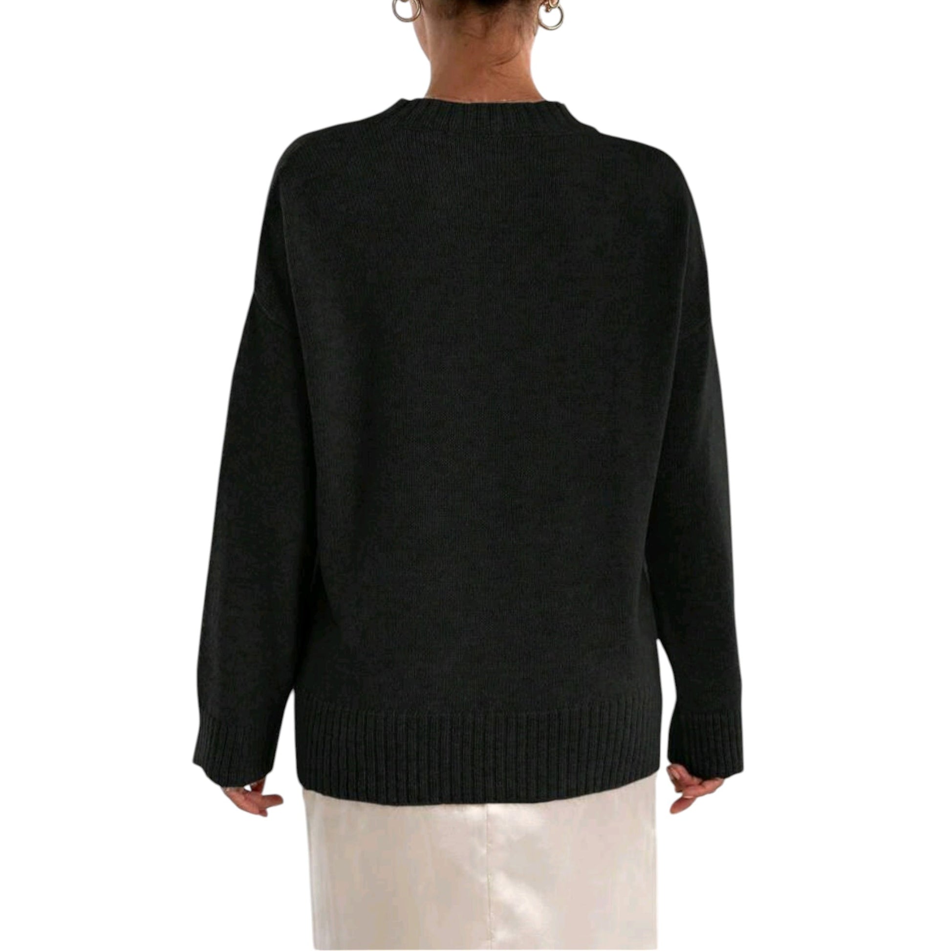 SHE fekete bordázott kötött pulóver