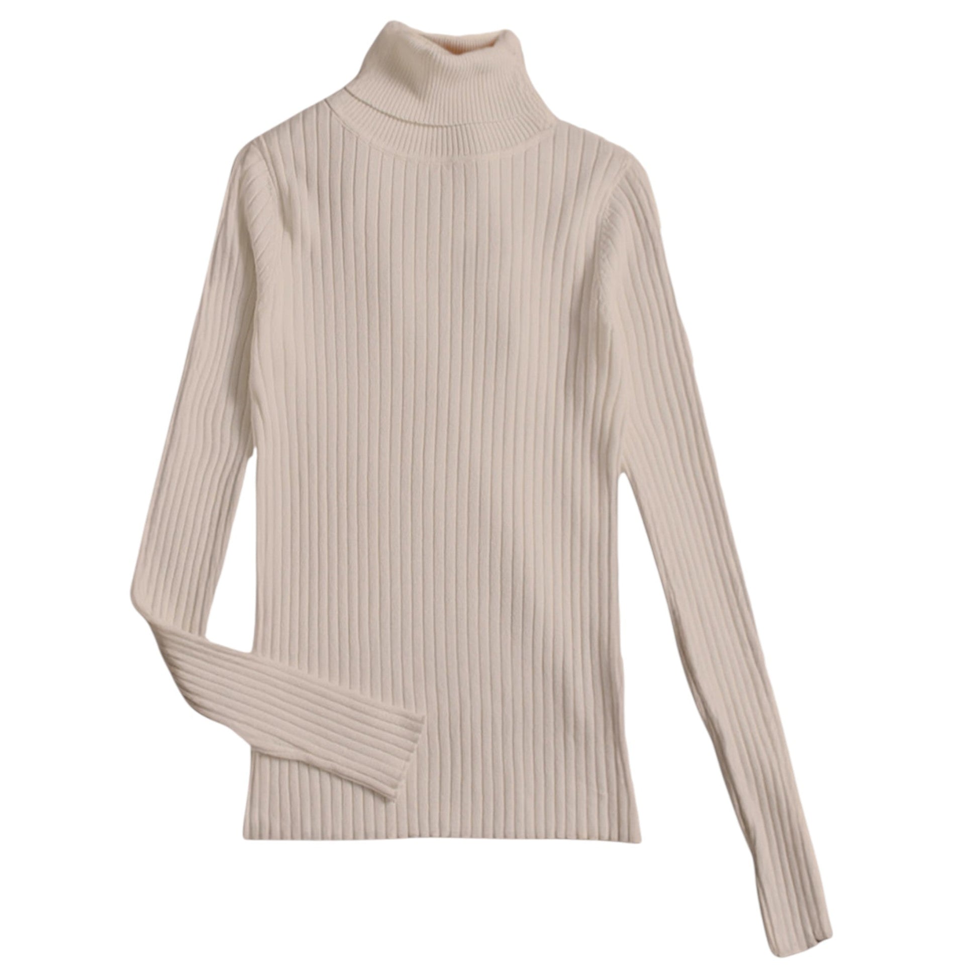 Címke nélküli, drapp, bordás kötött, magas nyakú, hosszú ujjú, slim fit.