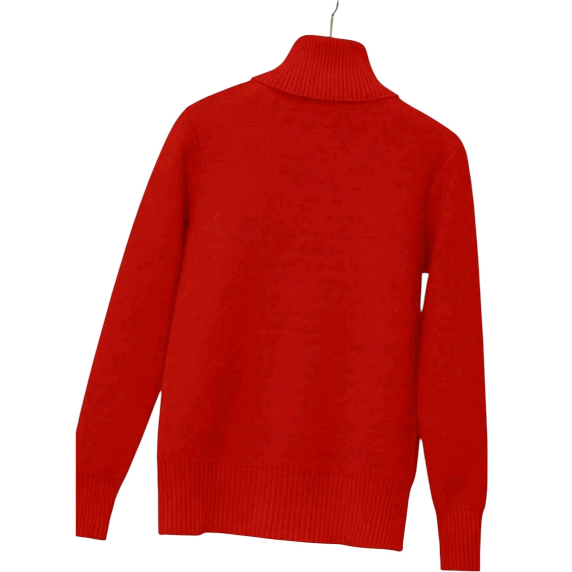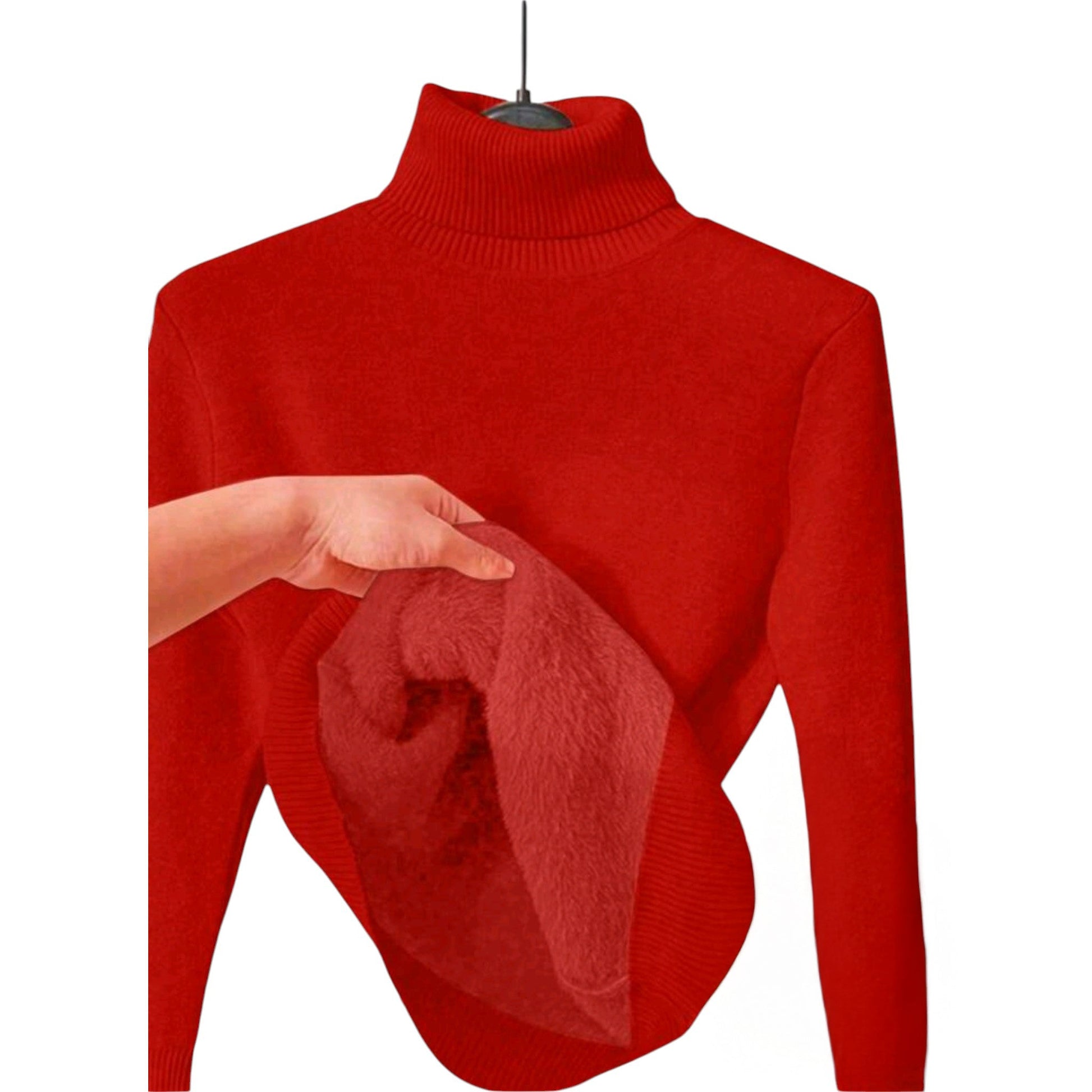 Címke nélküli, piros, kötött, garbó nyakú, hosszú ujjú, belül bolyhos.
