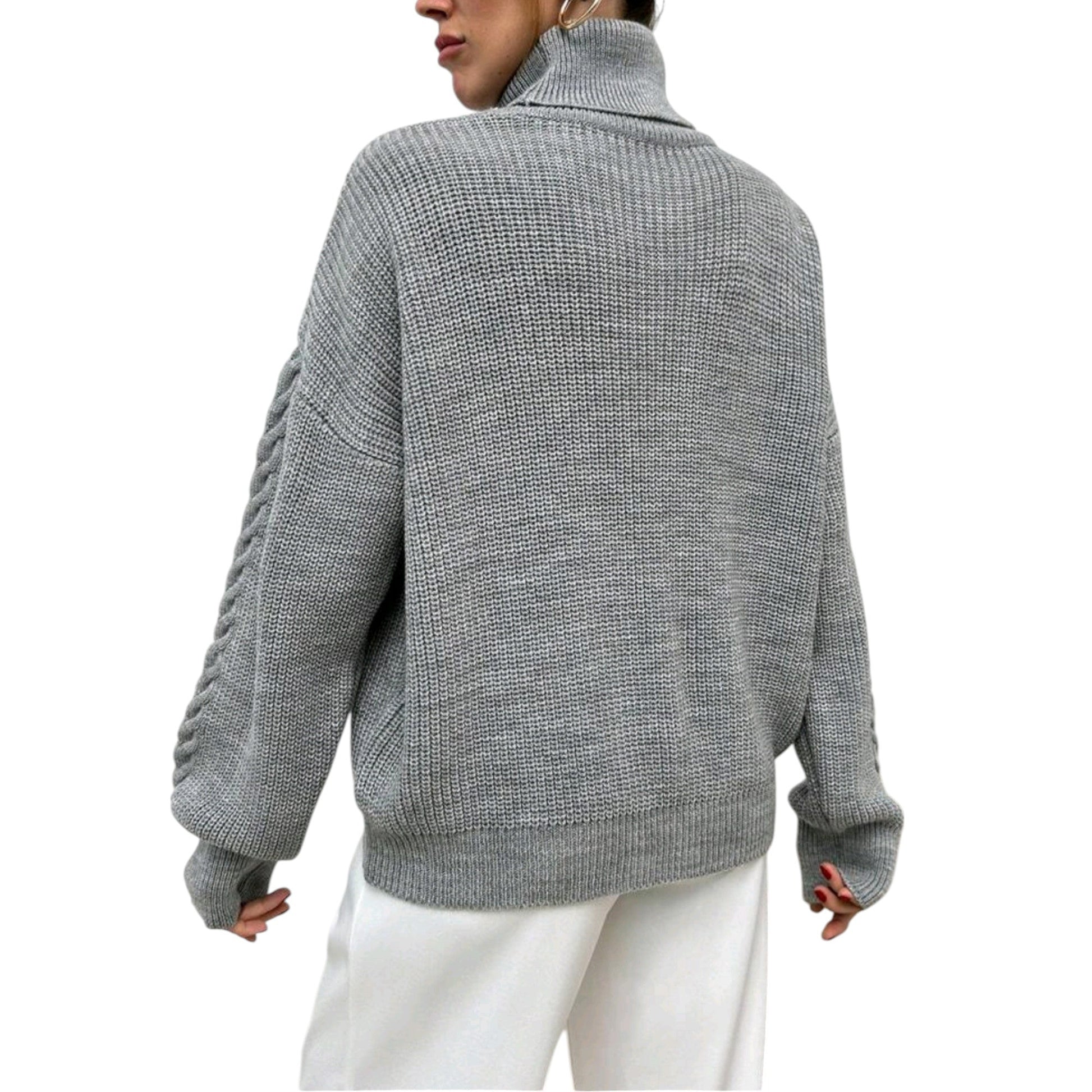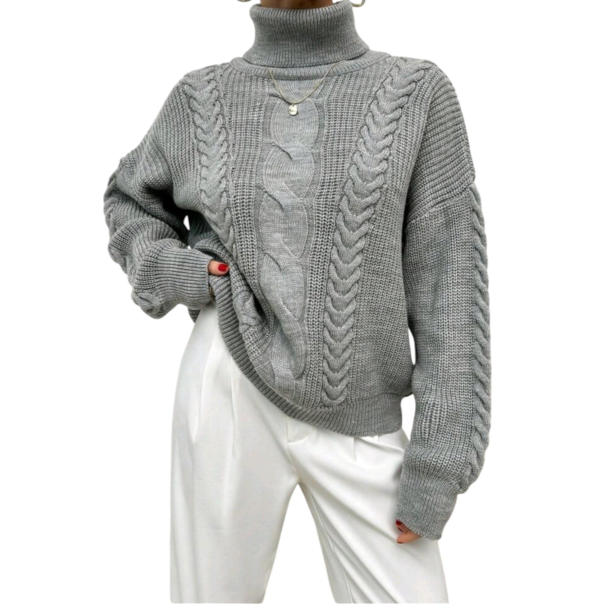 Címke nélküli, szürke, vastag kötésű, garbós, kable mintás, hosszú ujjú.