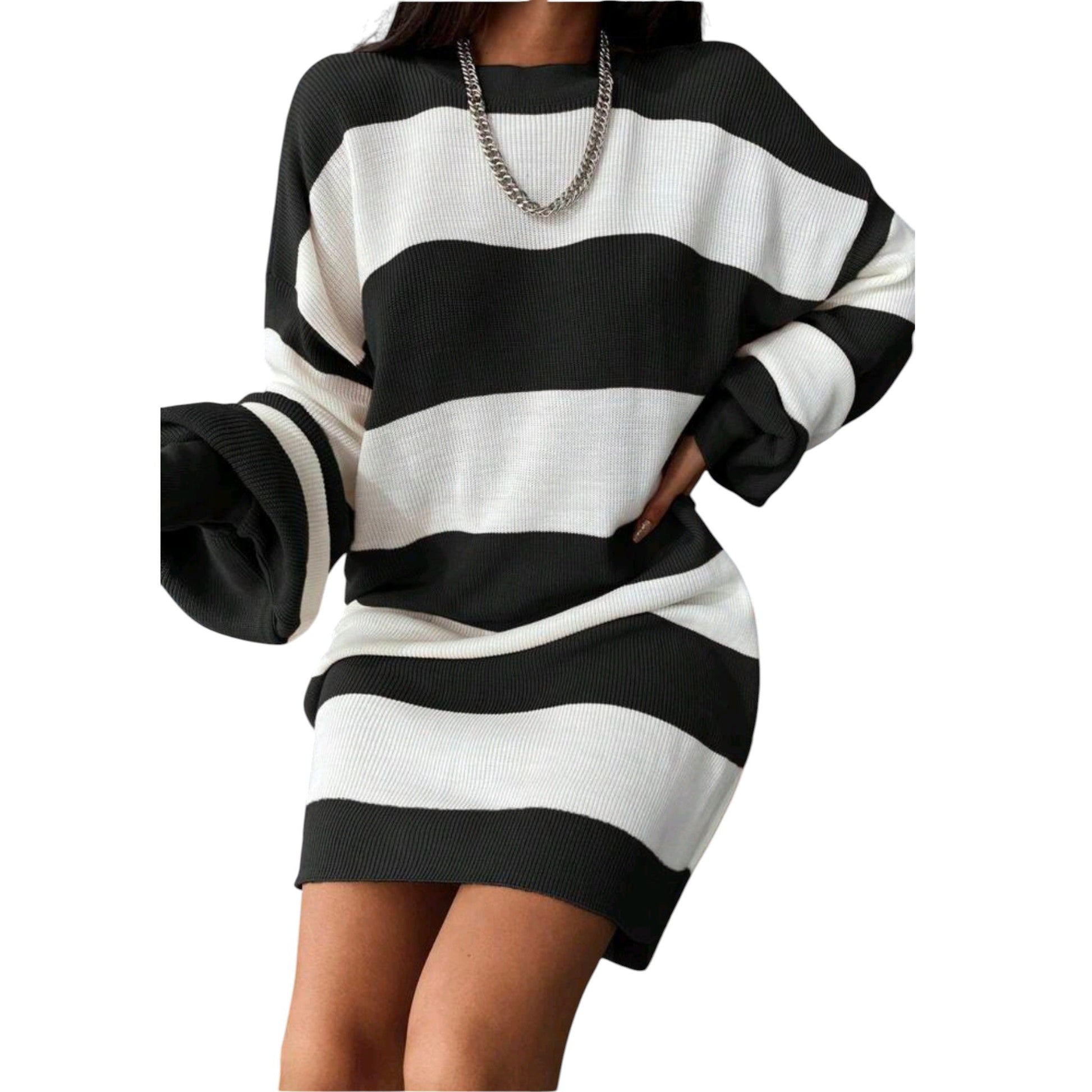 Címke nélküli, fekete és fehér csíkos, kerek nyakú, hosszú puffos ujjú, rövid szabású.