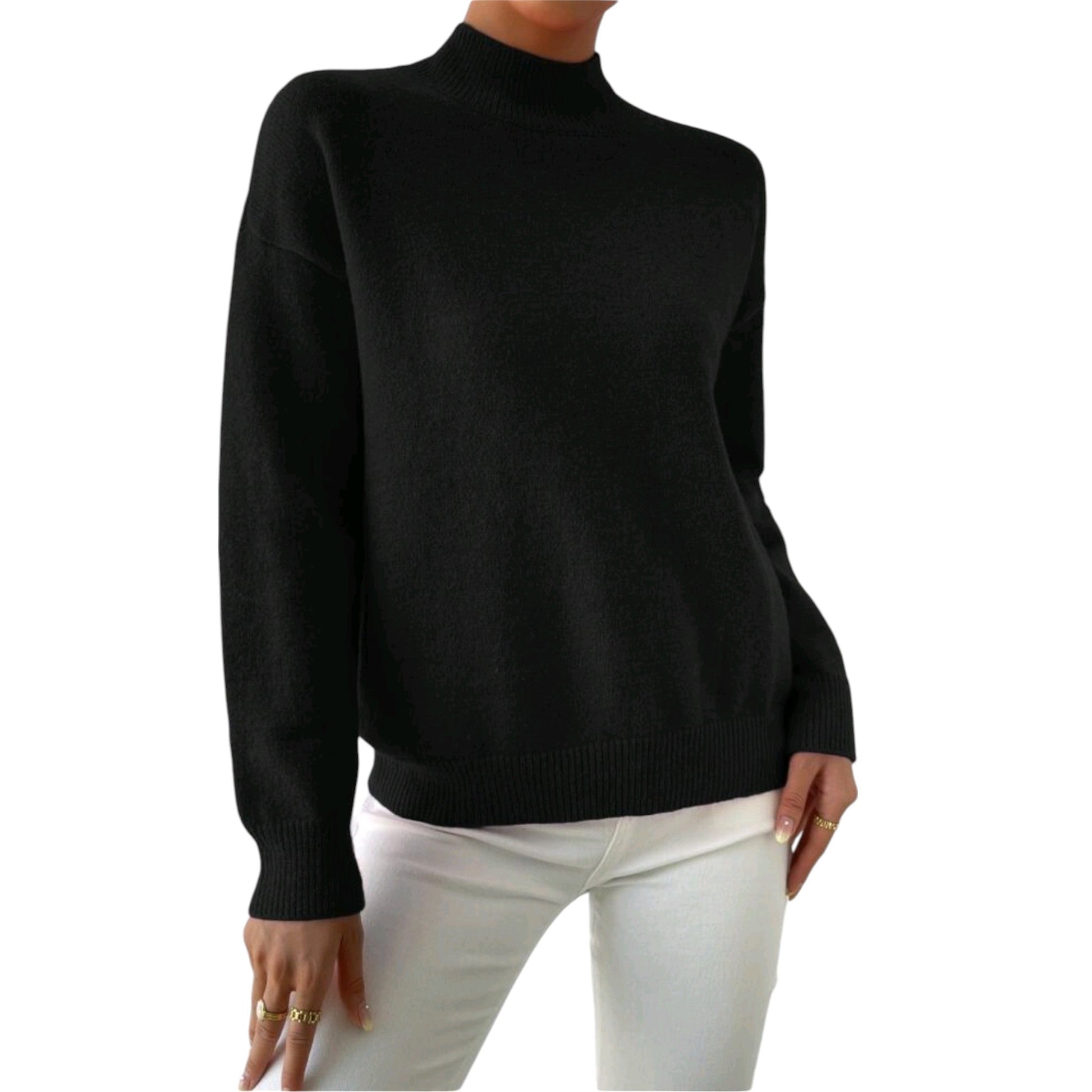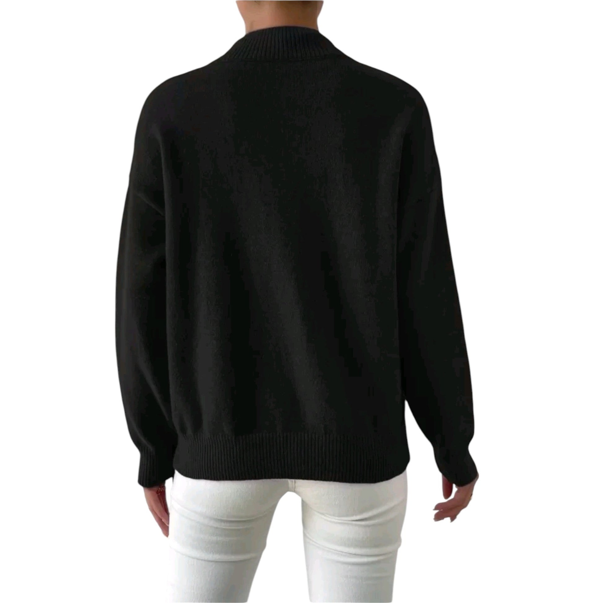 Címke nélküli, fekete, bordázott magas nyakú, hosszú ujjú.