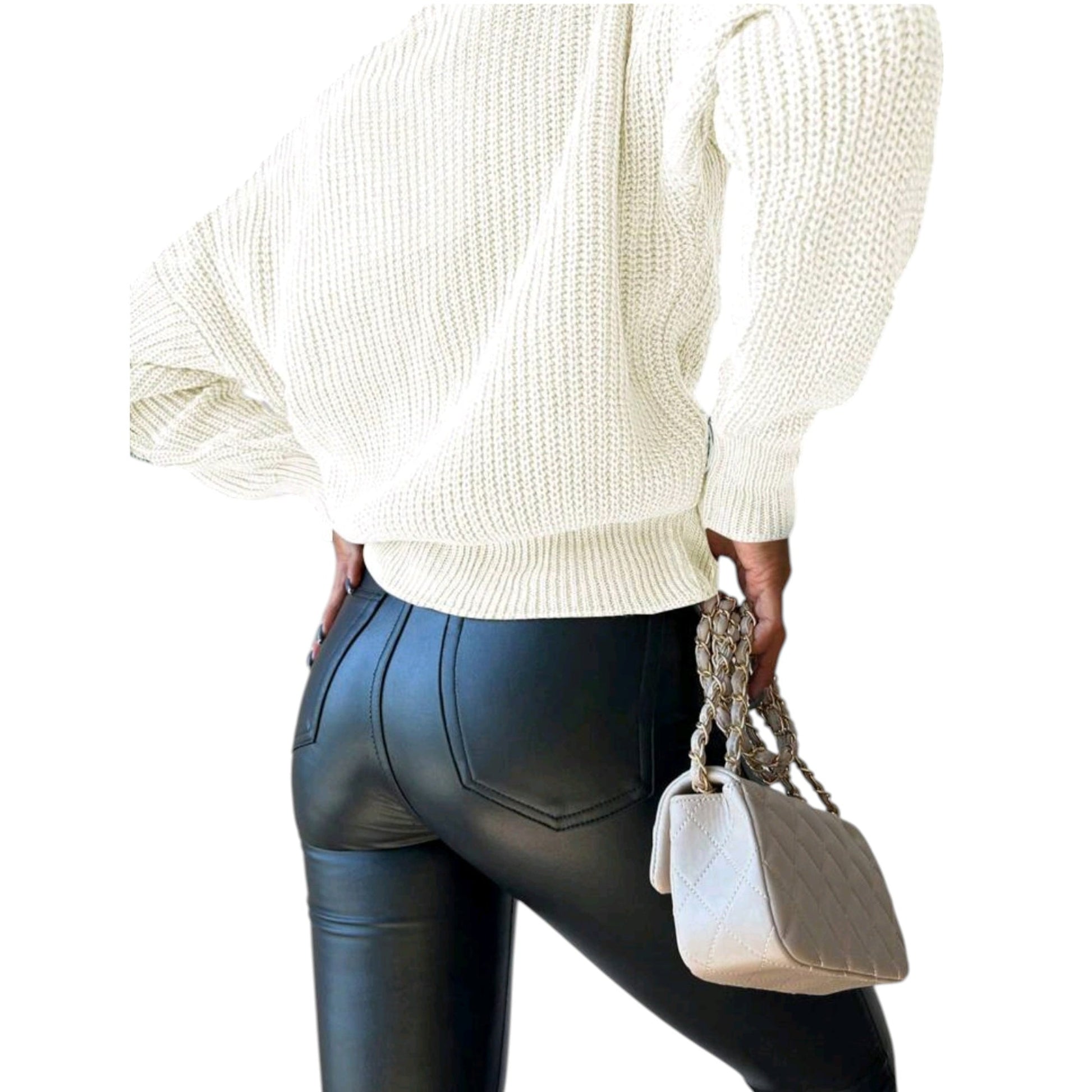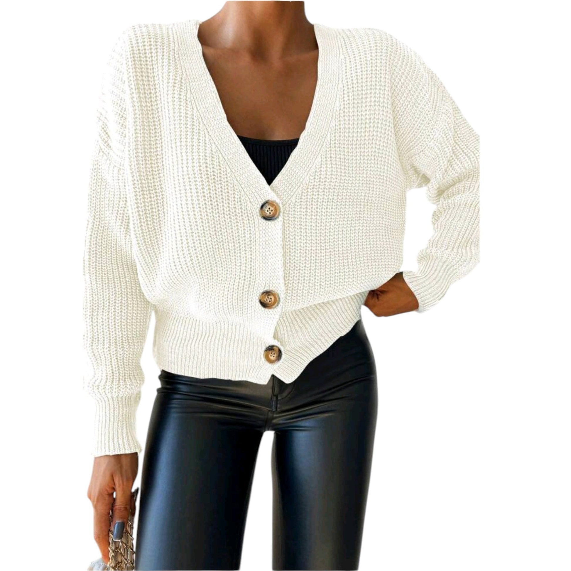 Címke nélküli, fehér, V-nyakú, gombos, bő ujjú, bordázott passzéval.