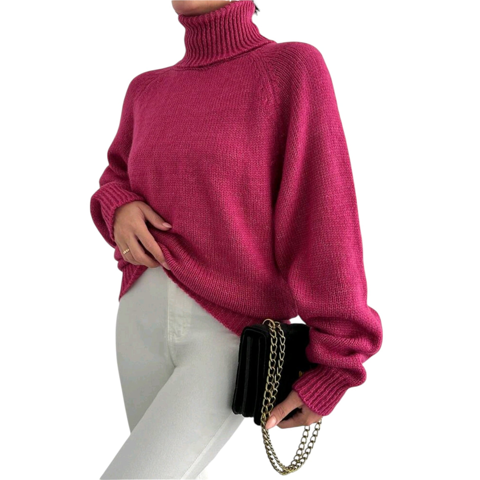 SHE fukszia garbó nyakú pulóver
