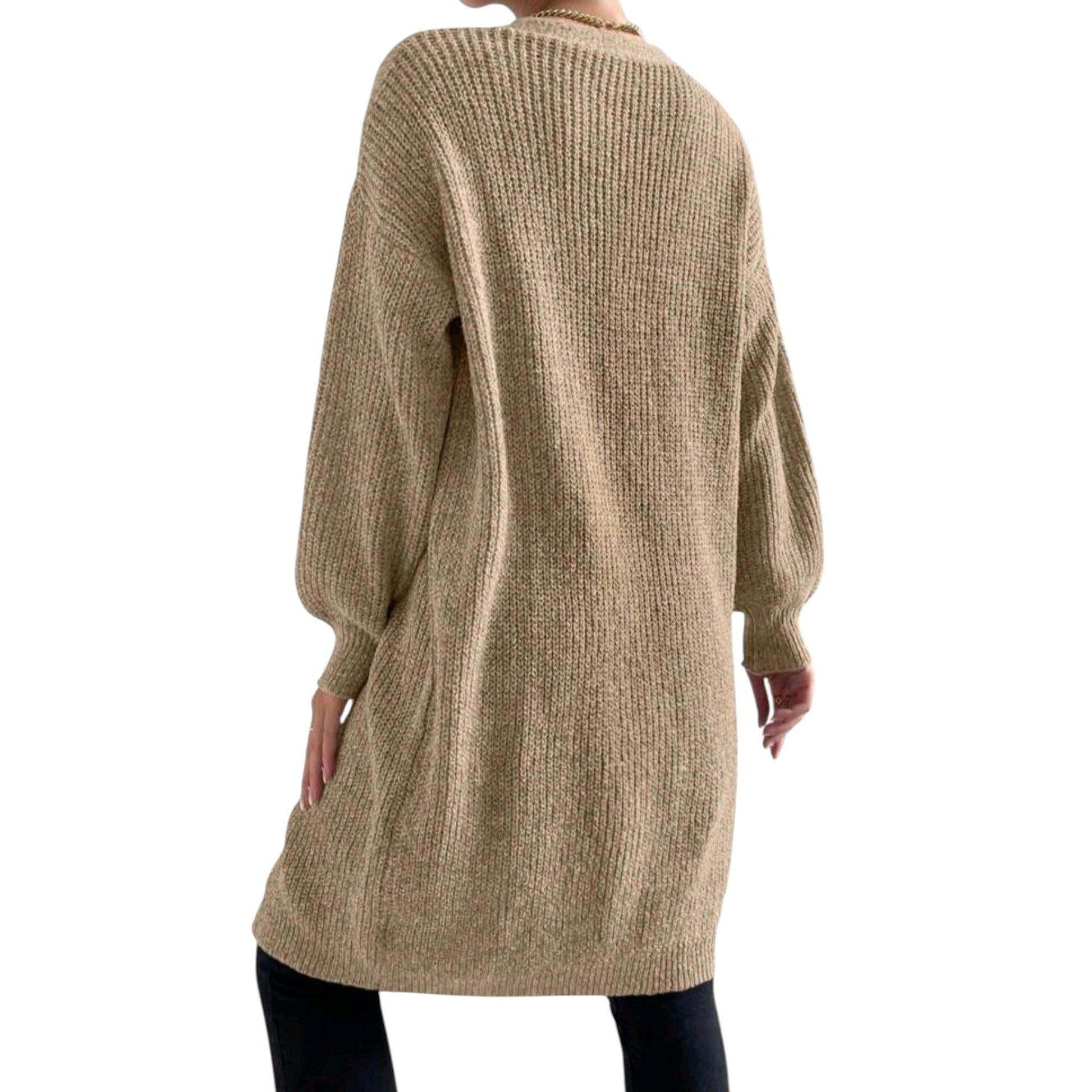 Címke nélküli, bézs, kötött, oversized, hosszú ujjú, nyitott fazon.