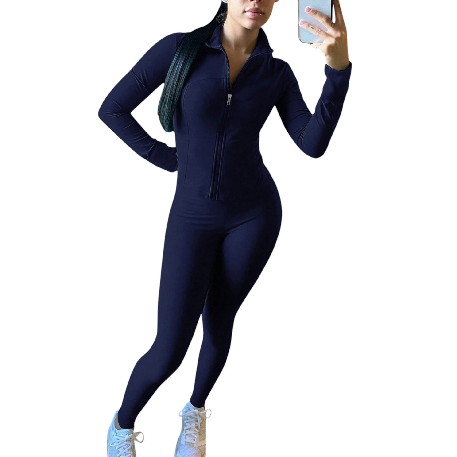 Címke nélküli, sötétkék, hosszú ujjú, garbó nyakú, elől cipzáras, testhezálló, hosszú újju felső és hozzá illő nadrág szett