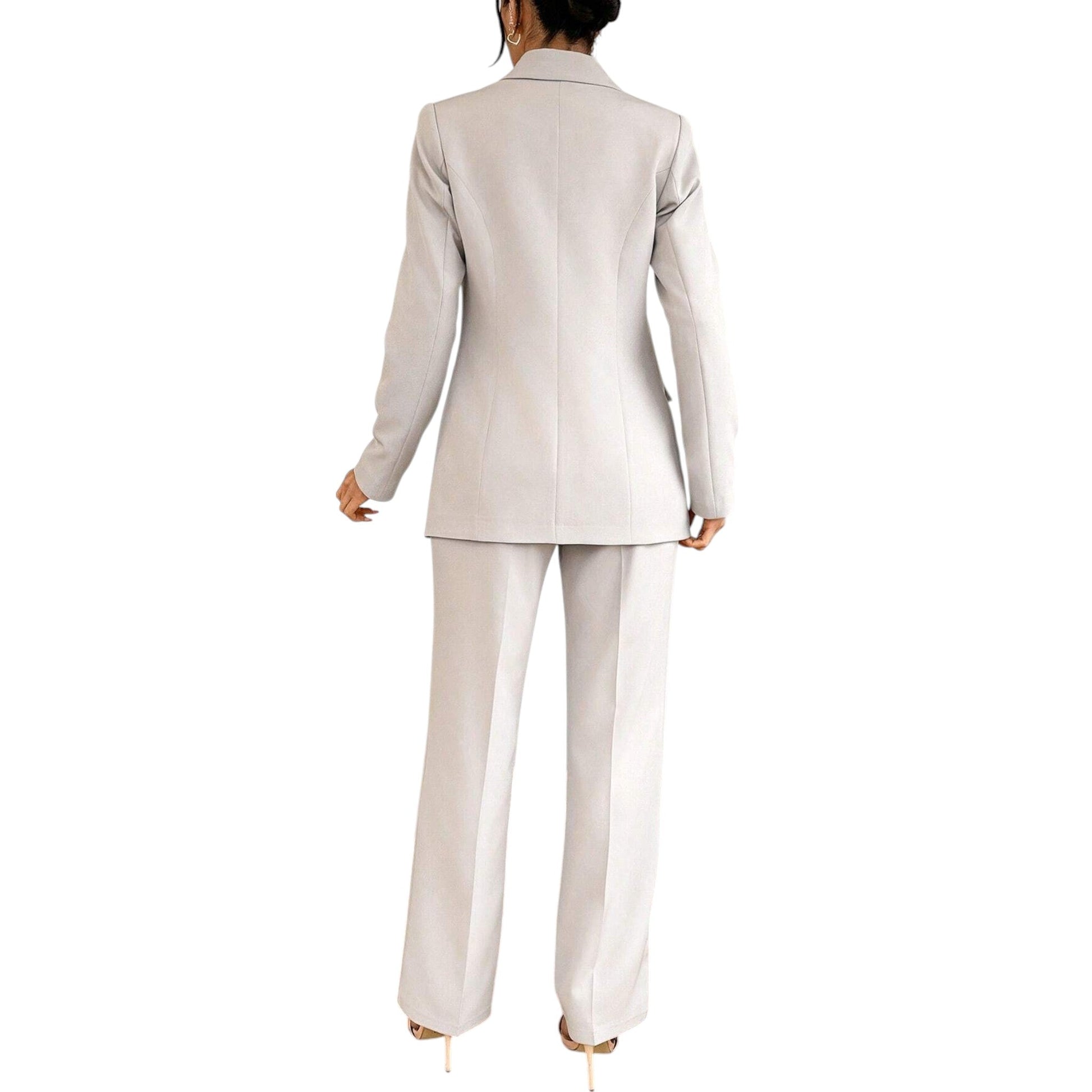 Címke nélküli, bézs, magas derekú, egyenes szárú nadrág és blézer