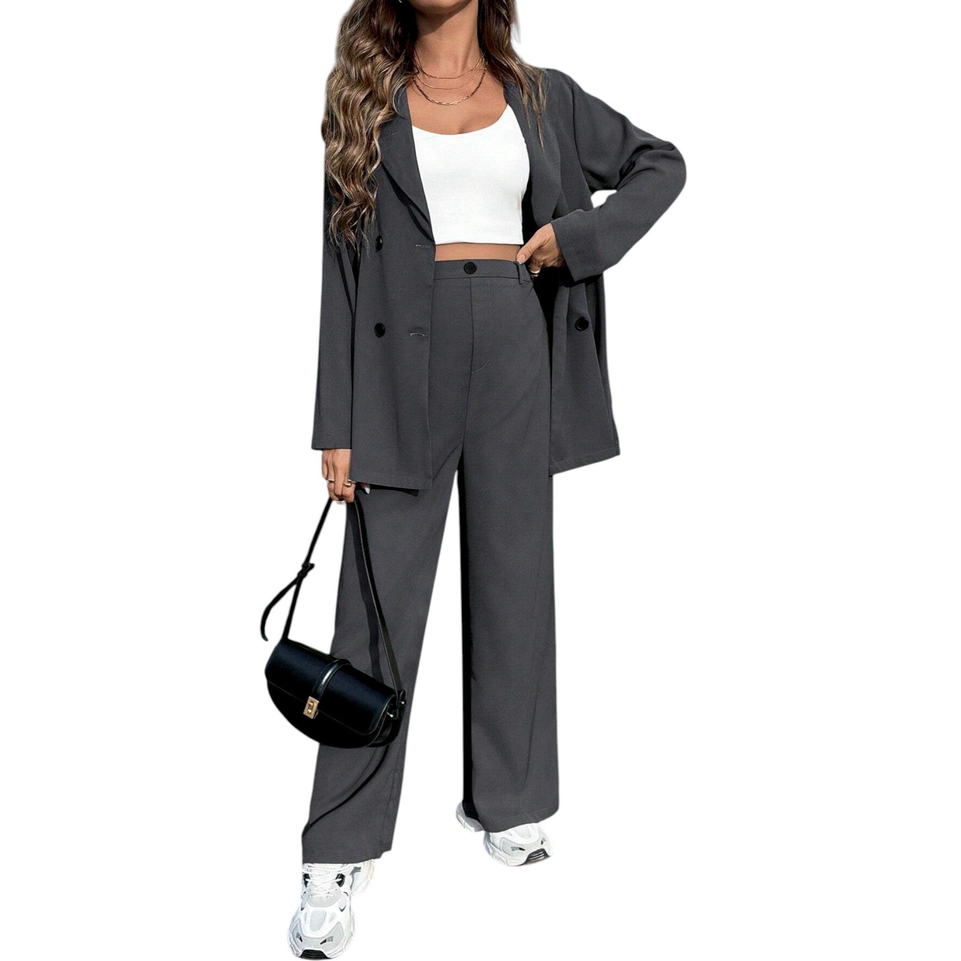SHE sötétszürke duplasoros blézer & nadrág szett
