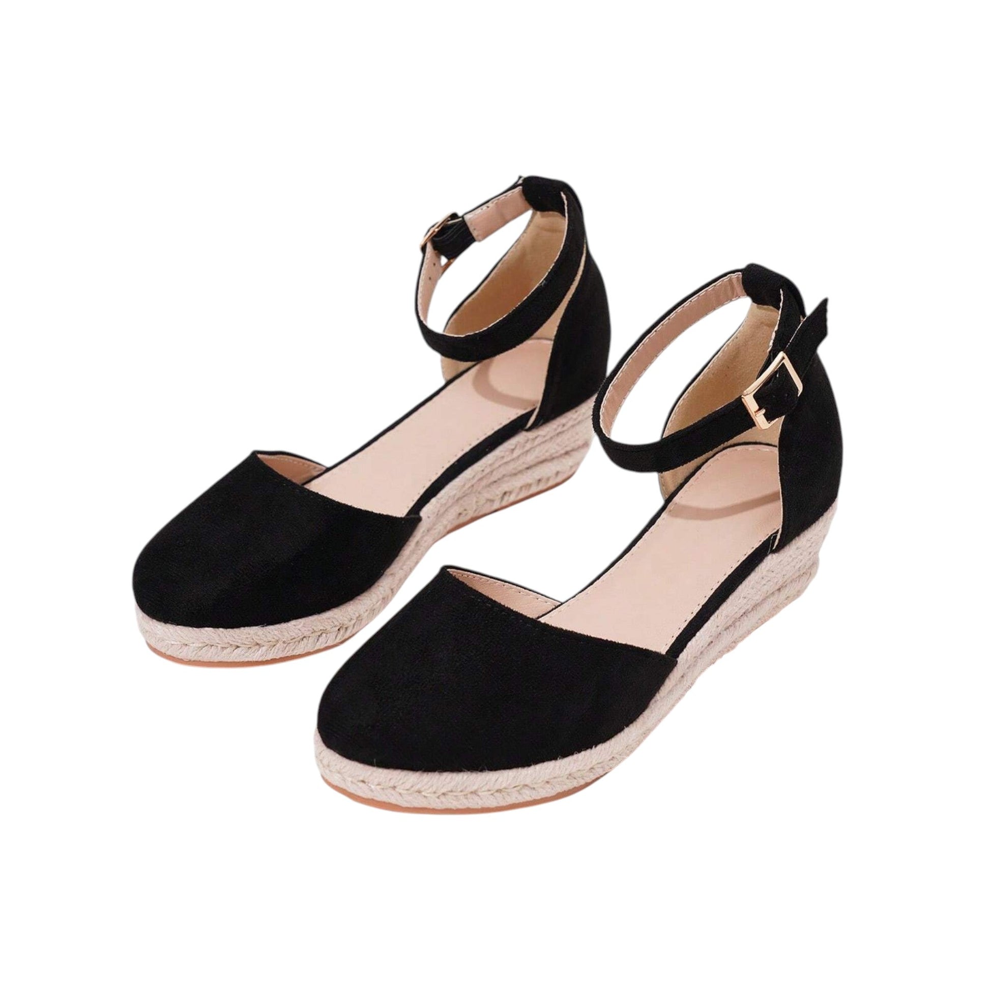 Címke nélküli, fekete, éktalpú espadrille szandál, bokapántos, fonott talpú.