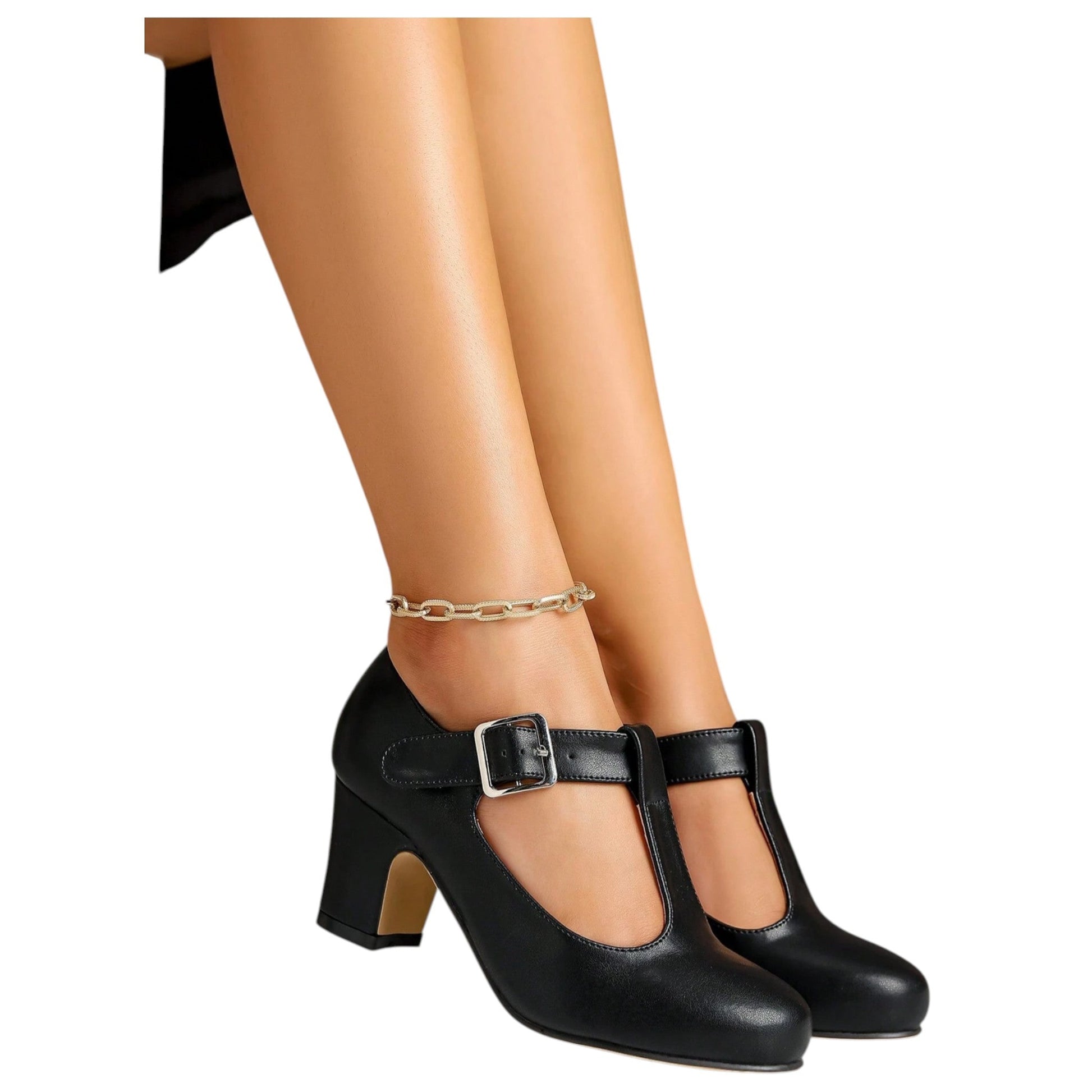 SHE fekete T-pántos Mary Jane cipő