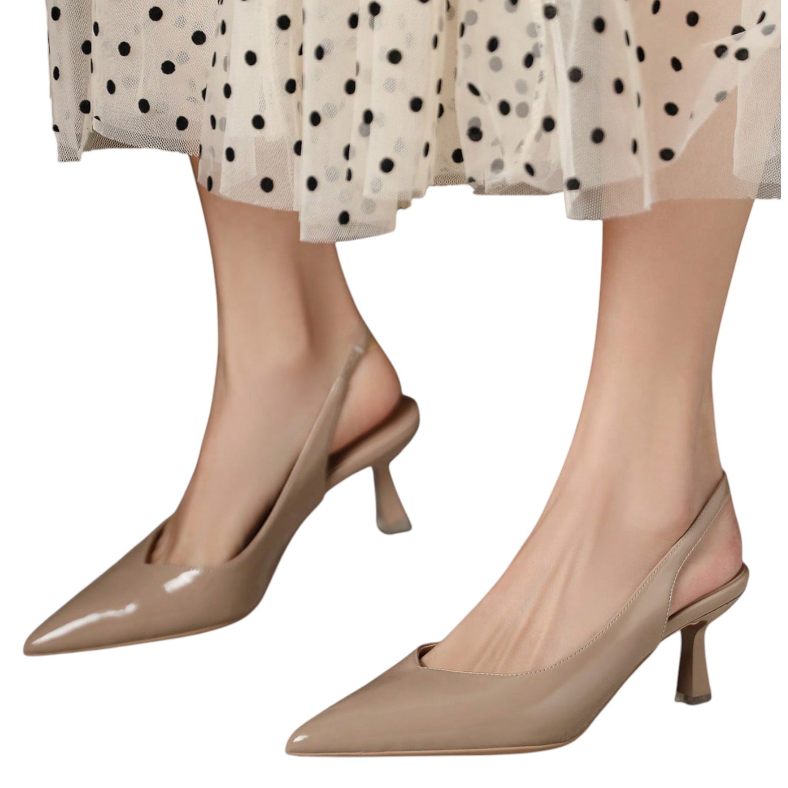 SHE drapp lakkozott slingback magassarkú