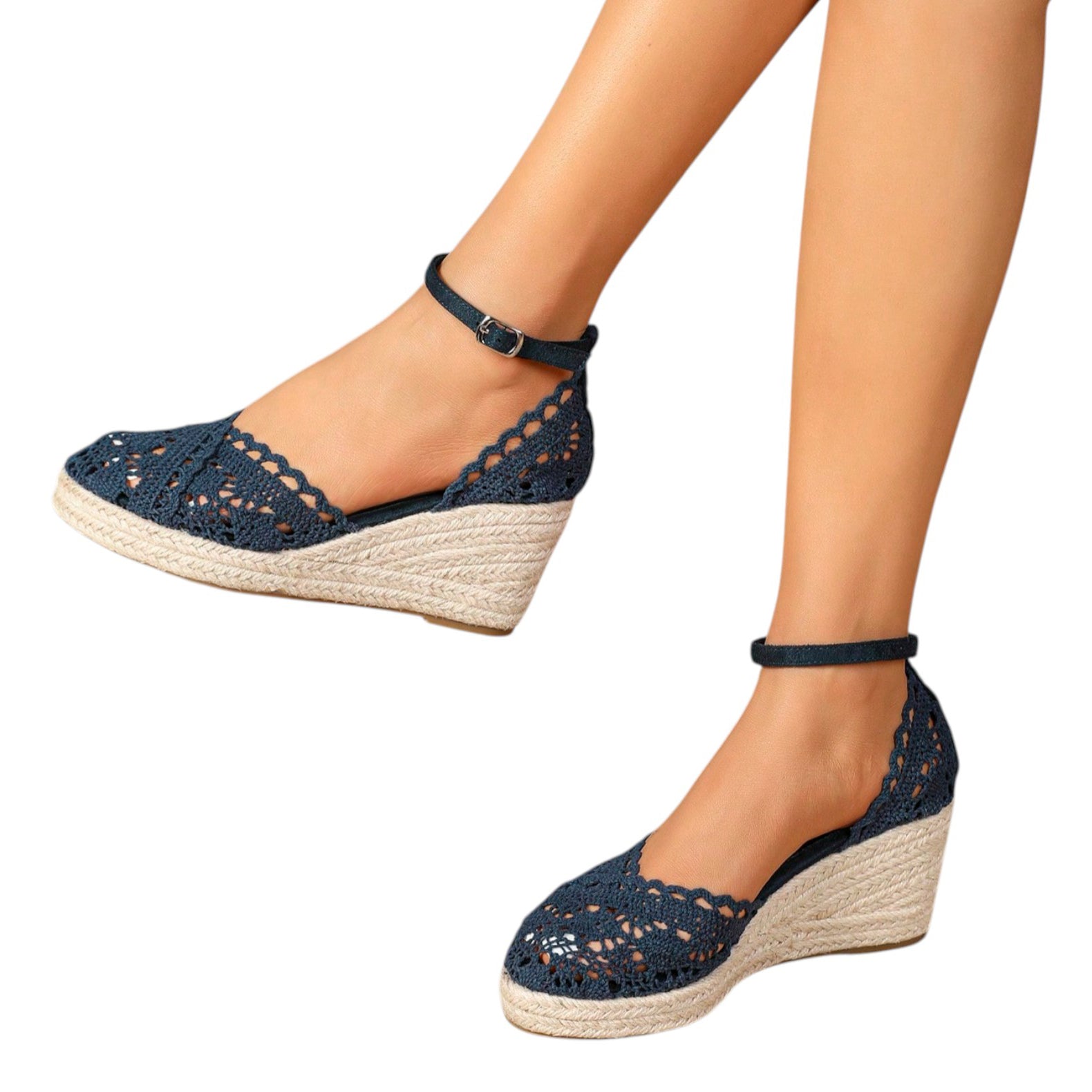 SHE sötétkék horgolt éktalpú espadrille