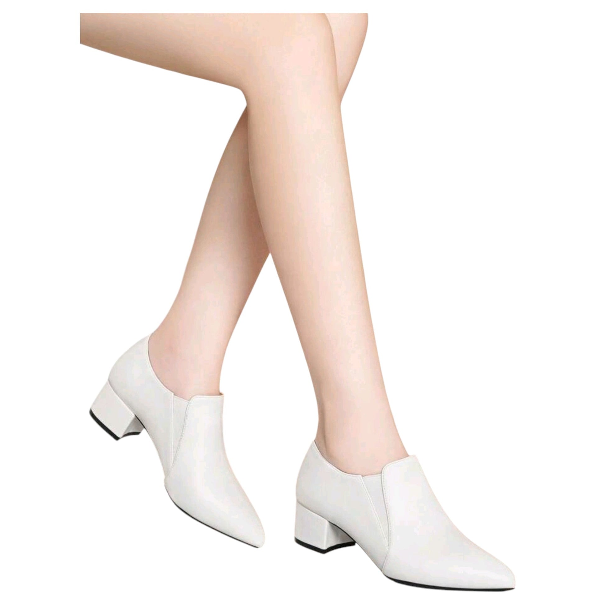 Címke nélküli, fehér, bőrhatású, hegyes orrú, vastag sarkú. Belső talp hossz: 22,5cm
