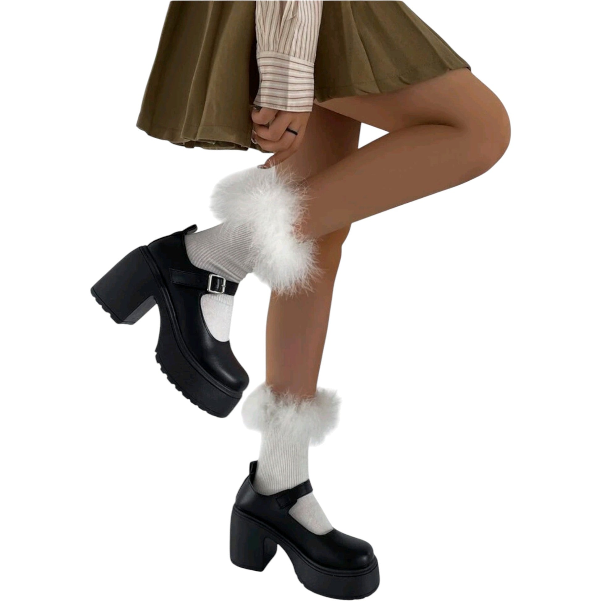 Címke nélküli, fekete, vastag (blokk) sarkú és platform talpú, kerek orrú, Mary Jane típusú cipő, elől csattal.