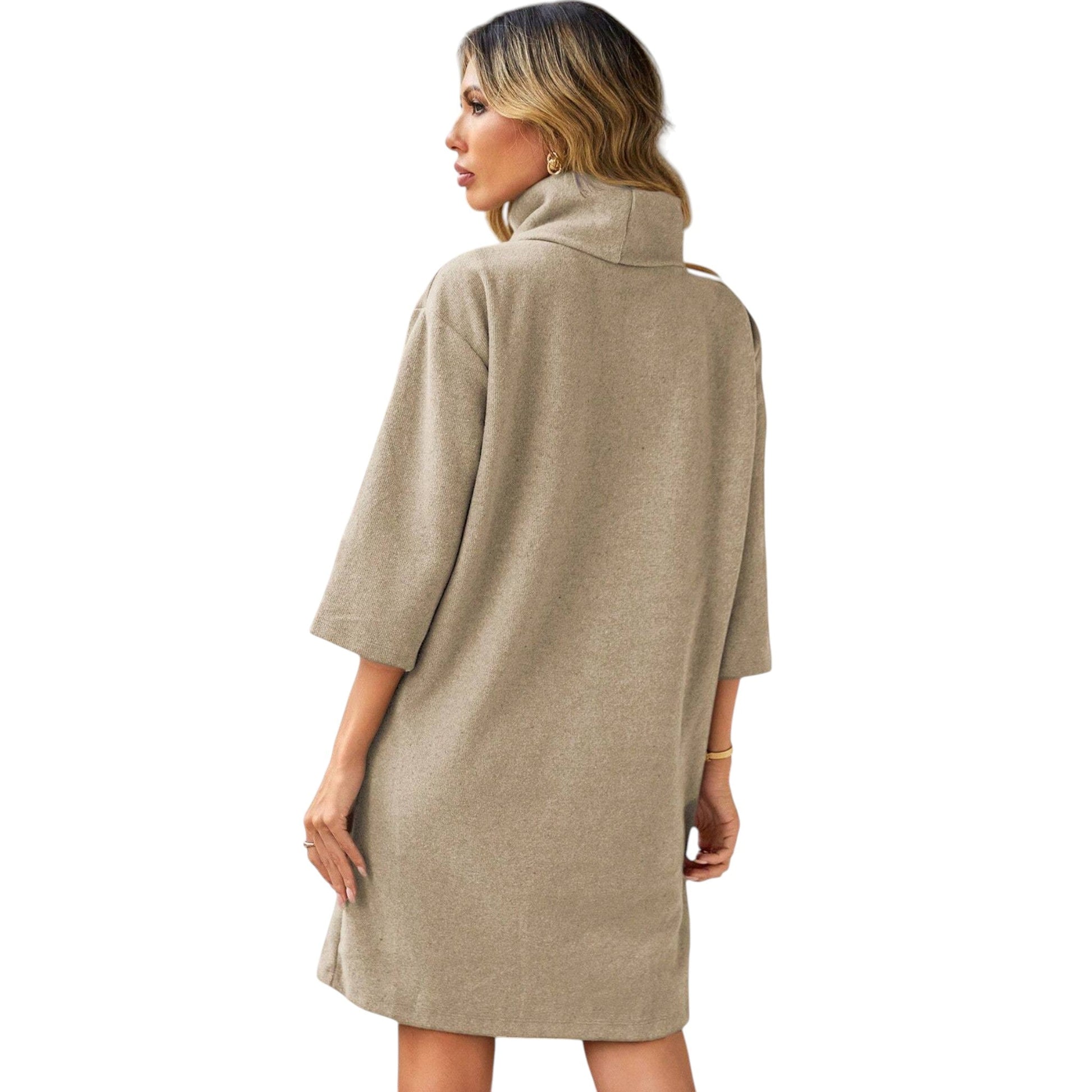 Címke nélküli, bézs, garbó nyakú, háromnegyedes ujjú, kötött mini ruha