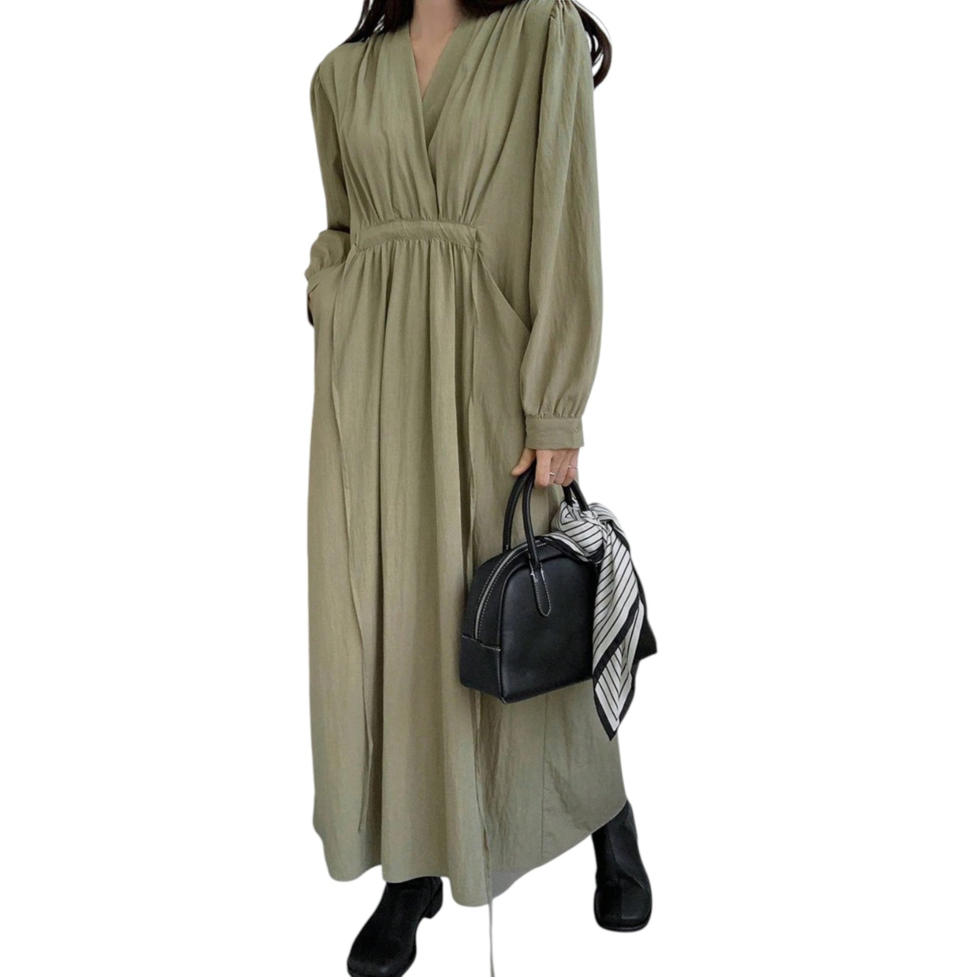 SHE zöld hajtókás maxi ruha