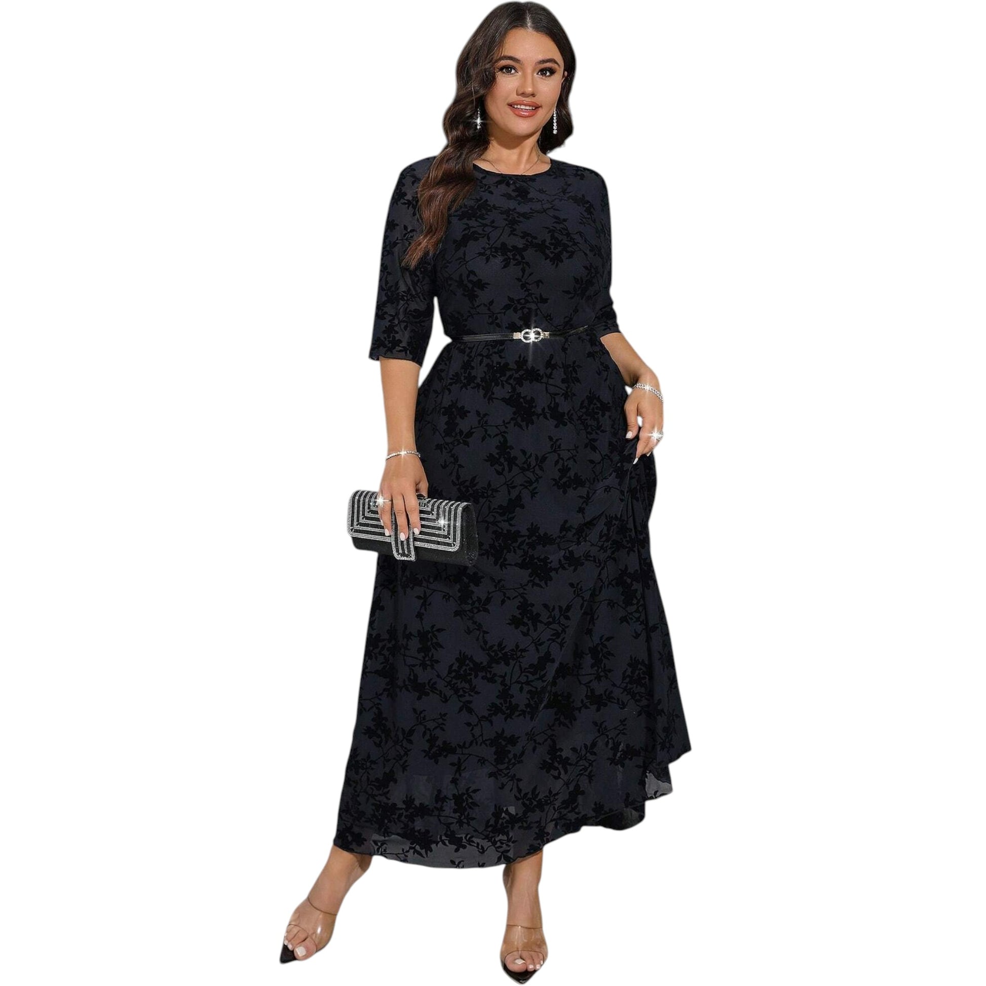 SHE fekete virágmintás maxi ruha