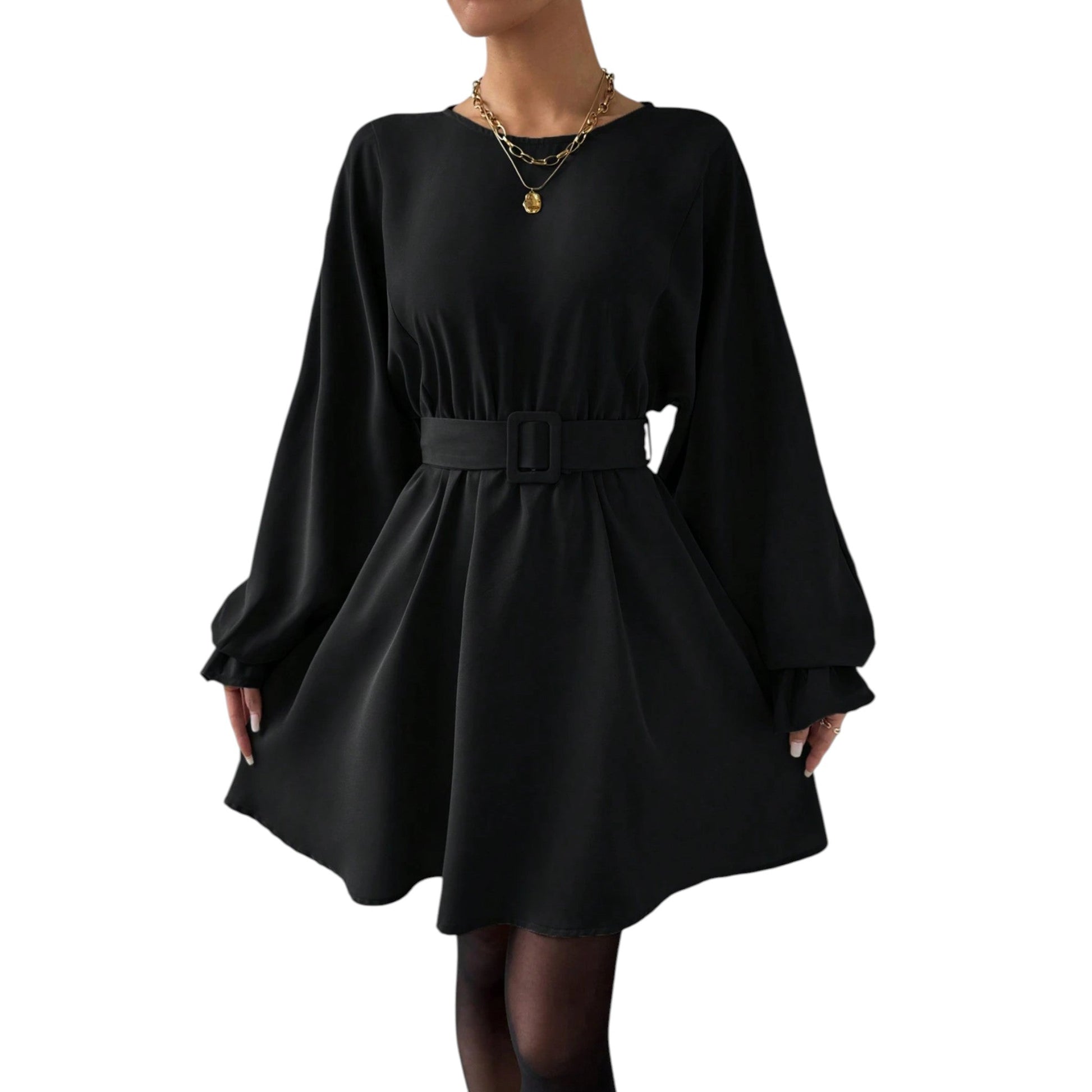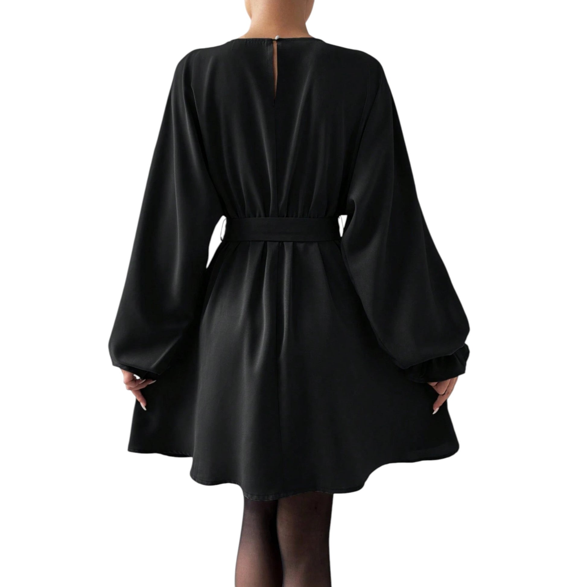 SHE fekete hosszú ujjú mini ruha övvel