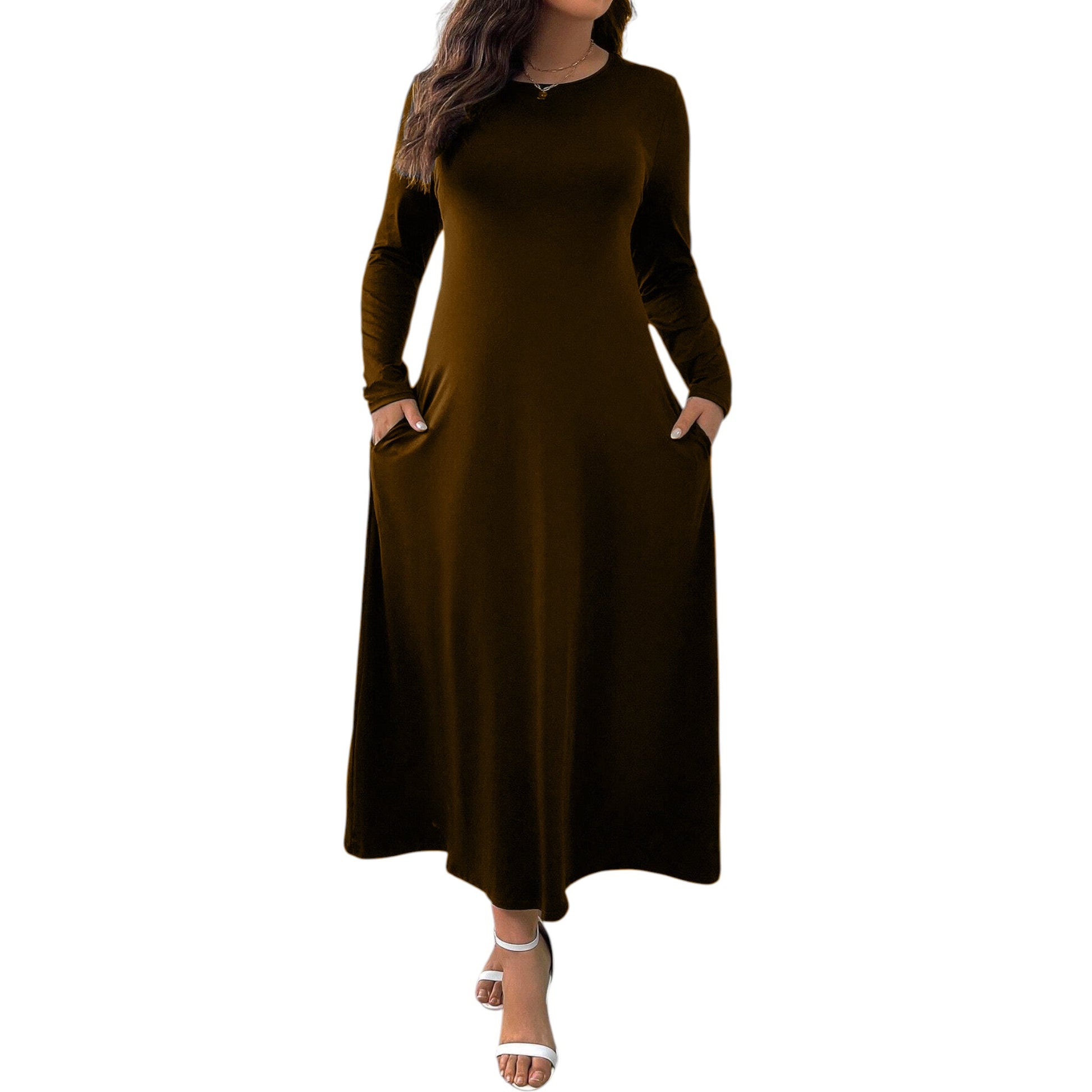 SHE barna hosszú ujjú maxi ruha zsebekkel