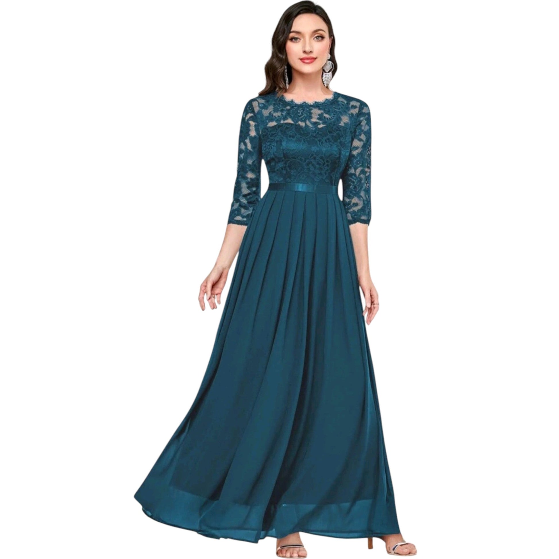 Címke nélküli, kékeszöld, hosszú, csipke felsőrésszel, 3/4-es ujjú, rakott szoknya.