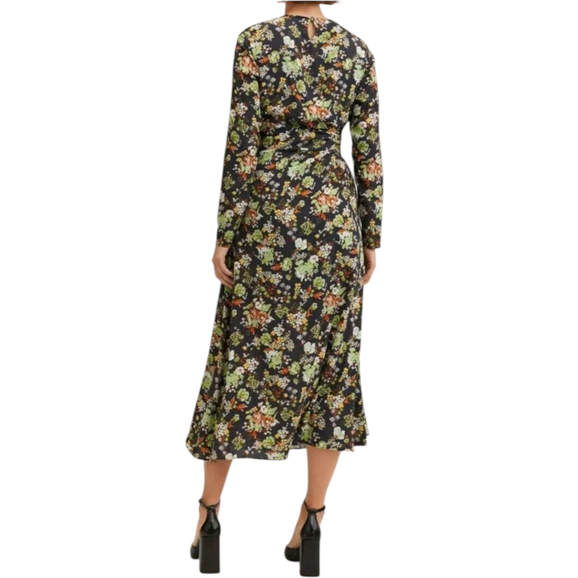 Címke nélküli, fekete, kötött, magas nyakú, hosszú ujjú, mini ruha.