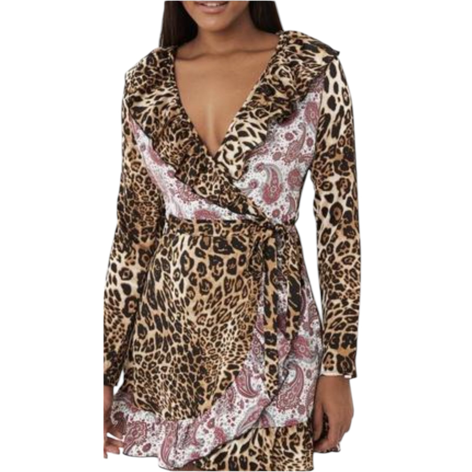 MISSGUIDED barna mintás V-nyakú mini ruha
