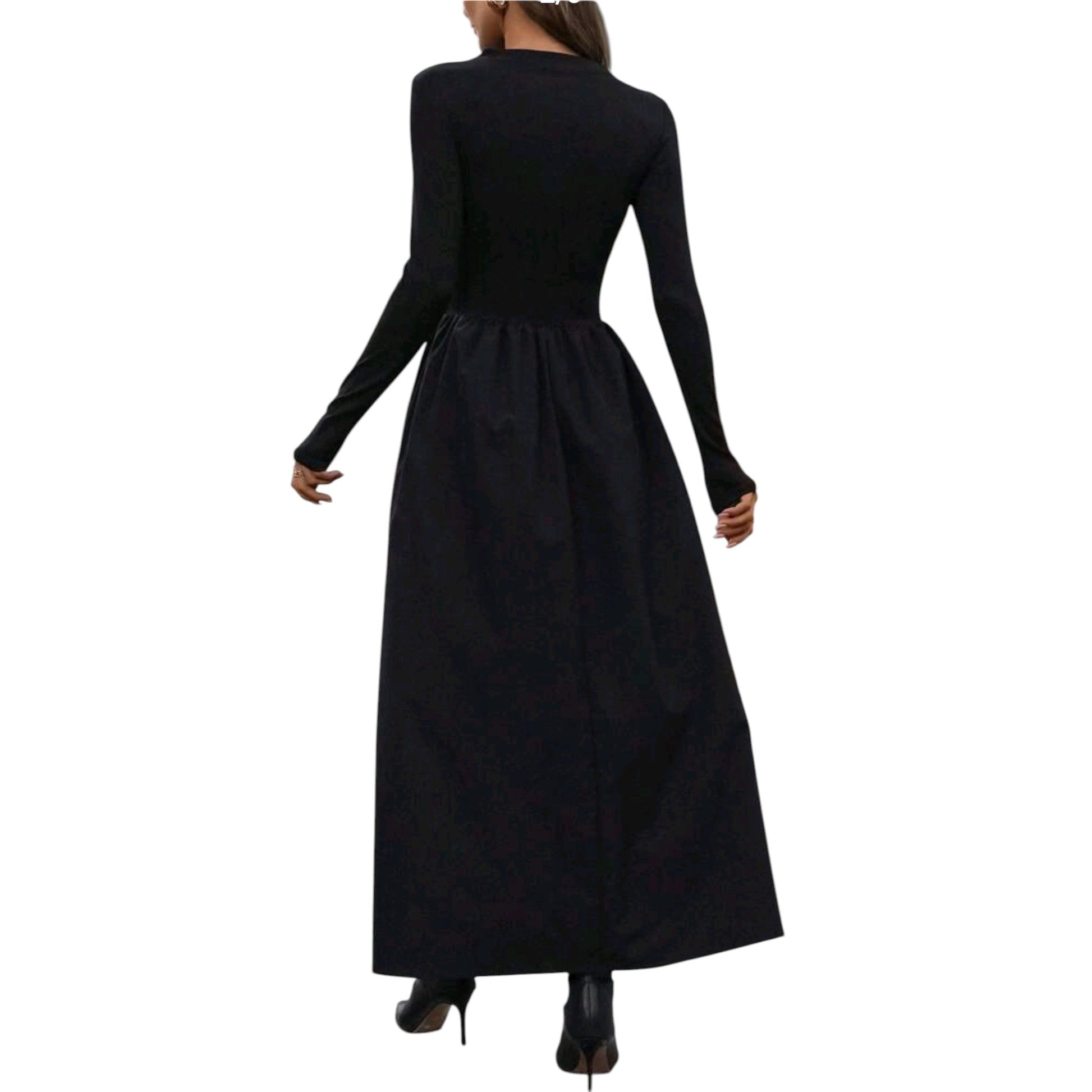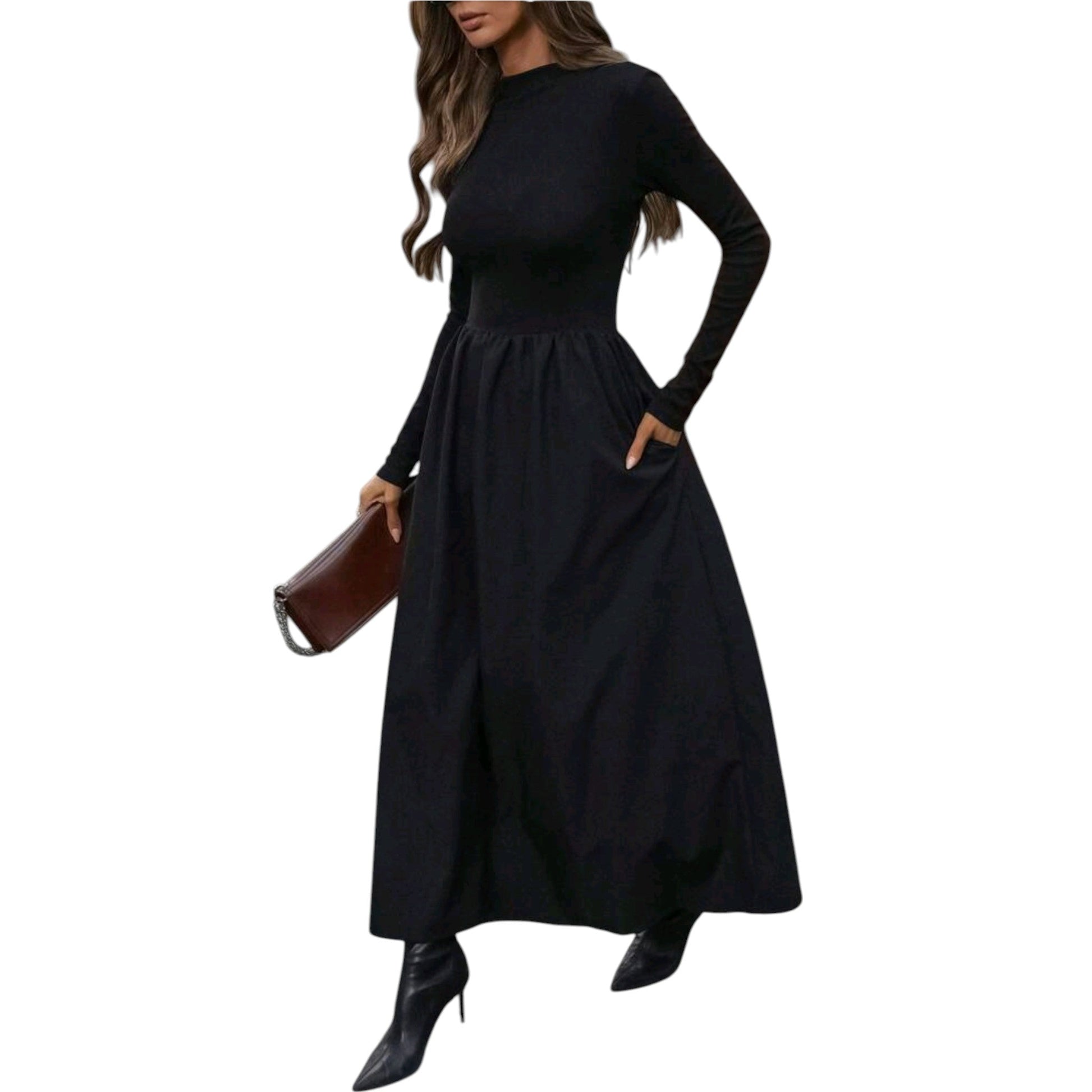Címke nélküli, fekete, hosszú ujjú, maxi ruha, garbó nyakkal és zsebekkel.