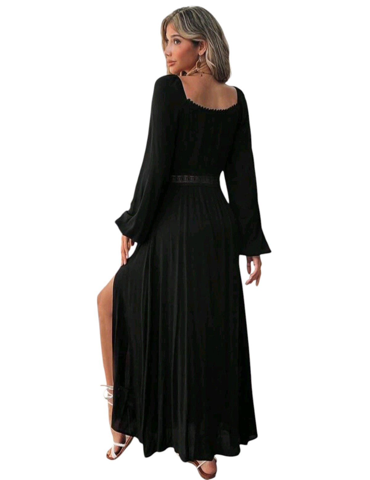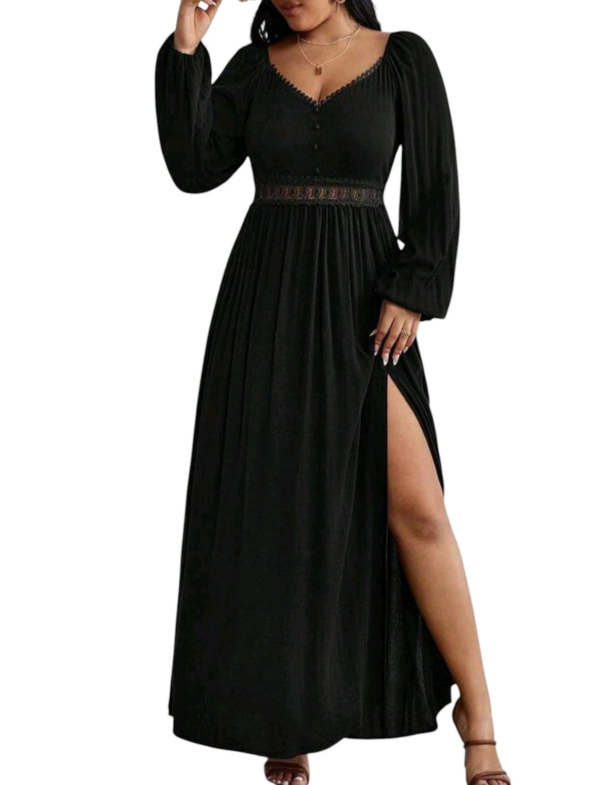 SHE fekete csipkés betétes maxi ruha