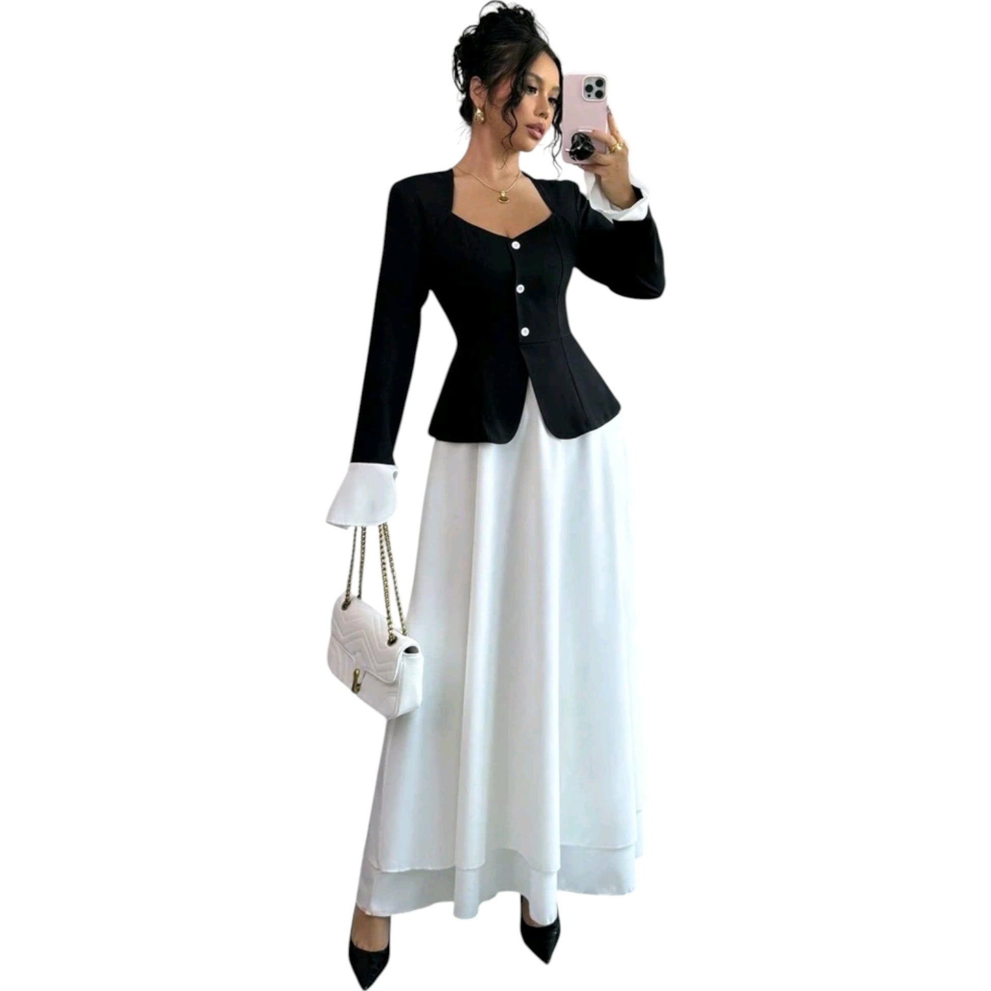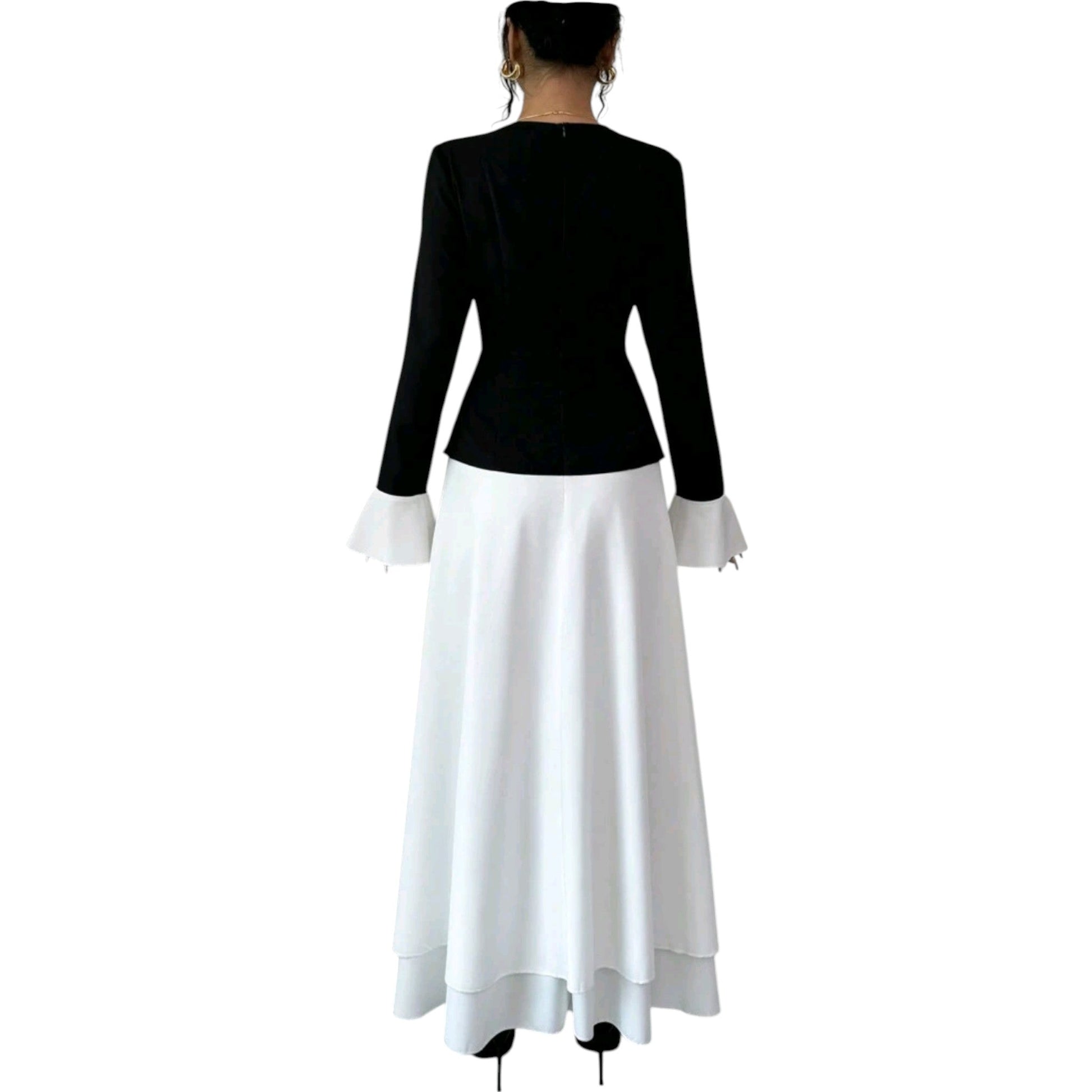 SHE fekete-fehér hosszú ujjú kétrészes maxi ruha
