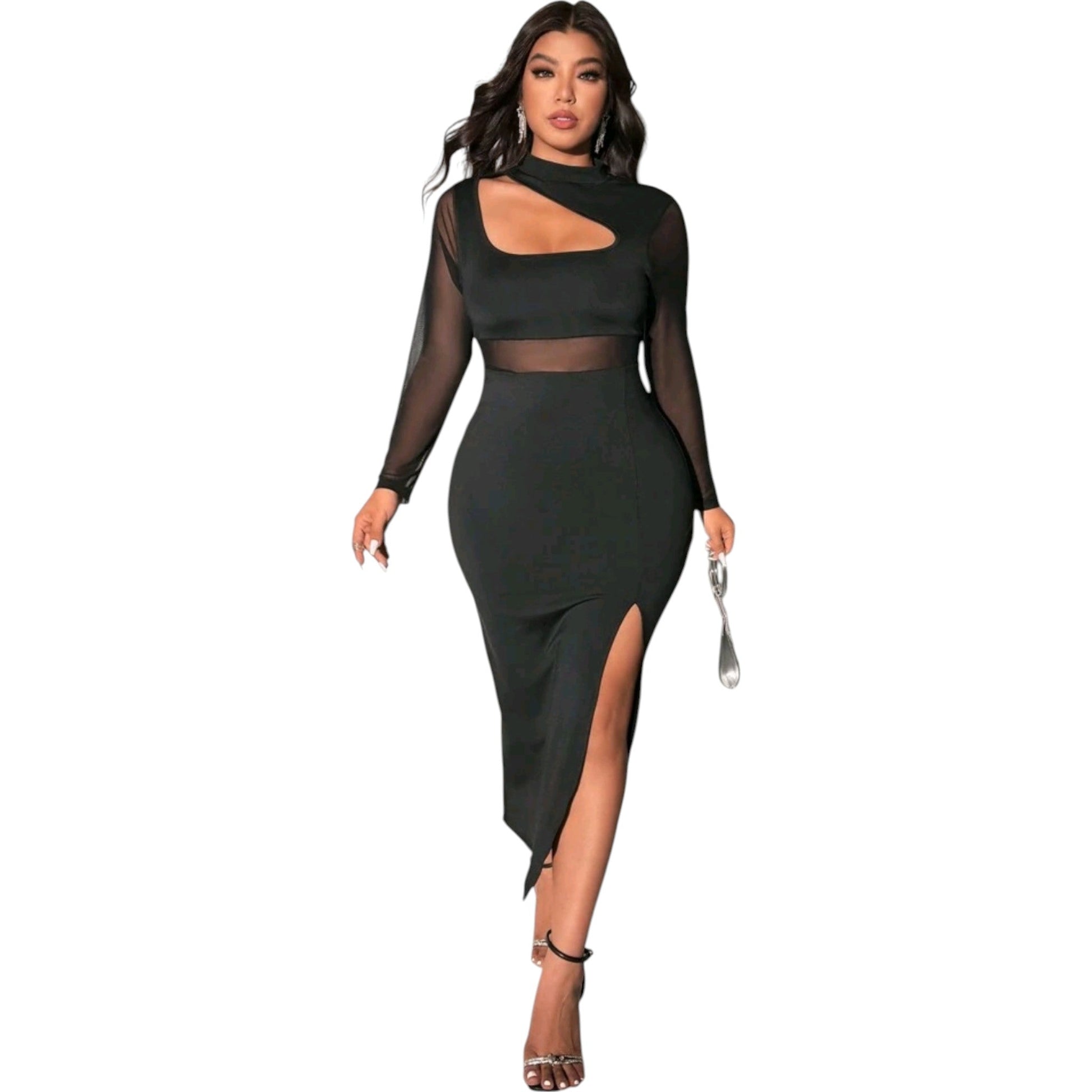 SHE fekete hosszú ujjú hasítékos maxi ruha