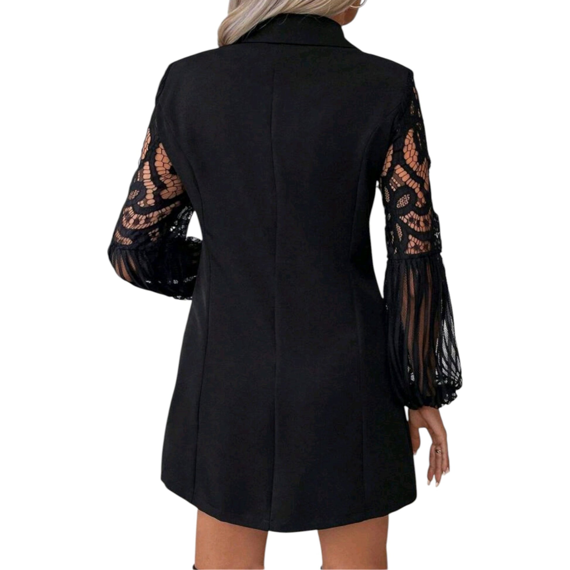 Címke nélküli, fekete, hosszú ujjú, csipke ujjú, kétsoros gombolású.