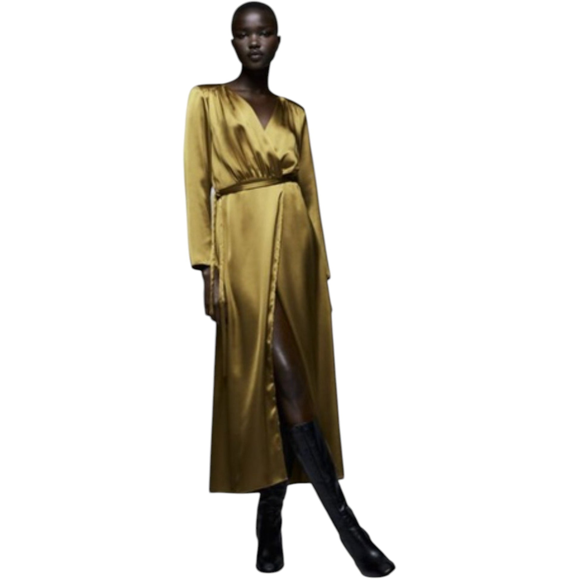 ZARA olivazöld selyem hatású midi ruha