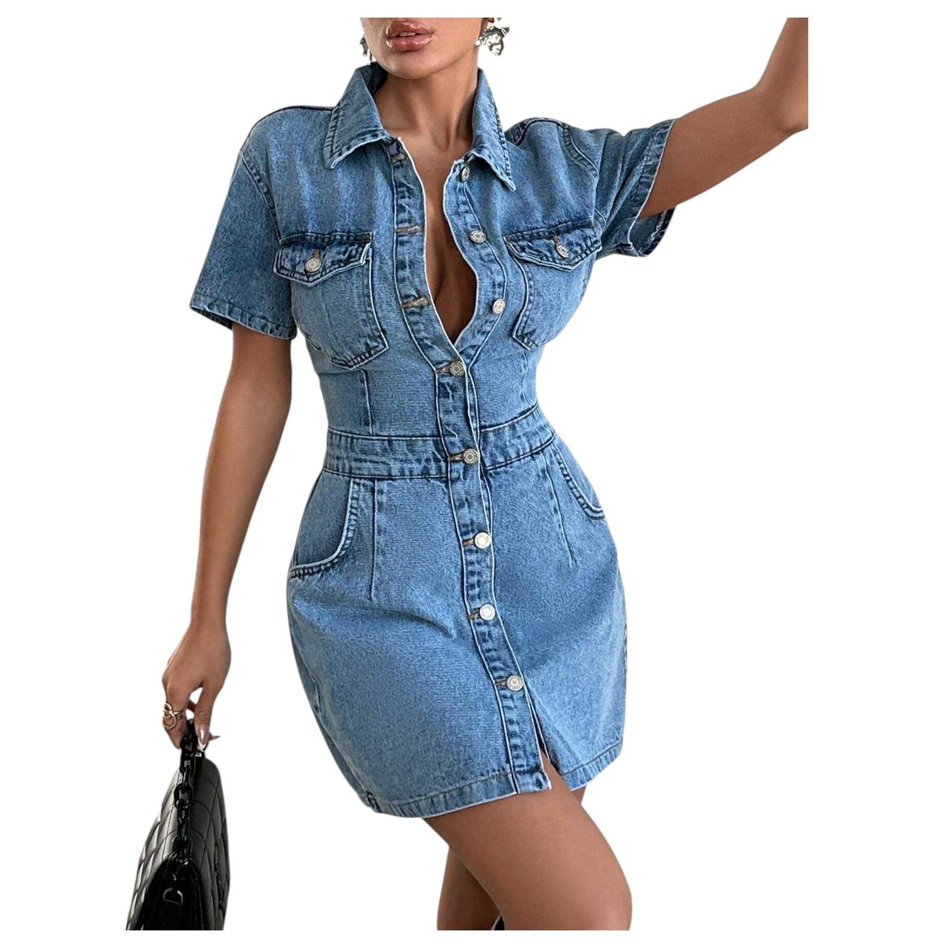 SHE kék rövid ujjú farmer ruha