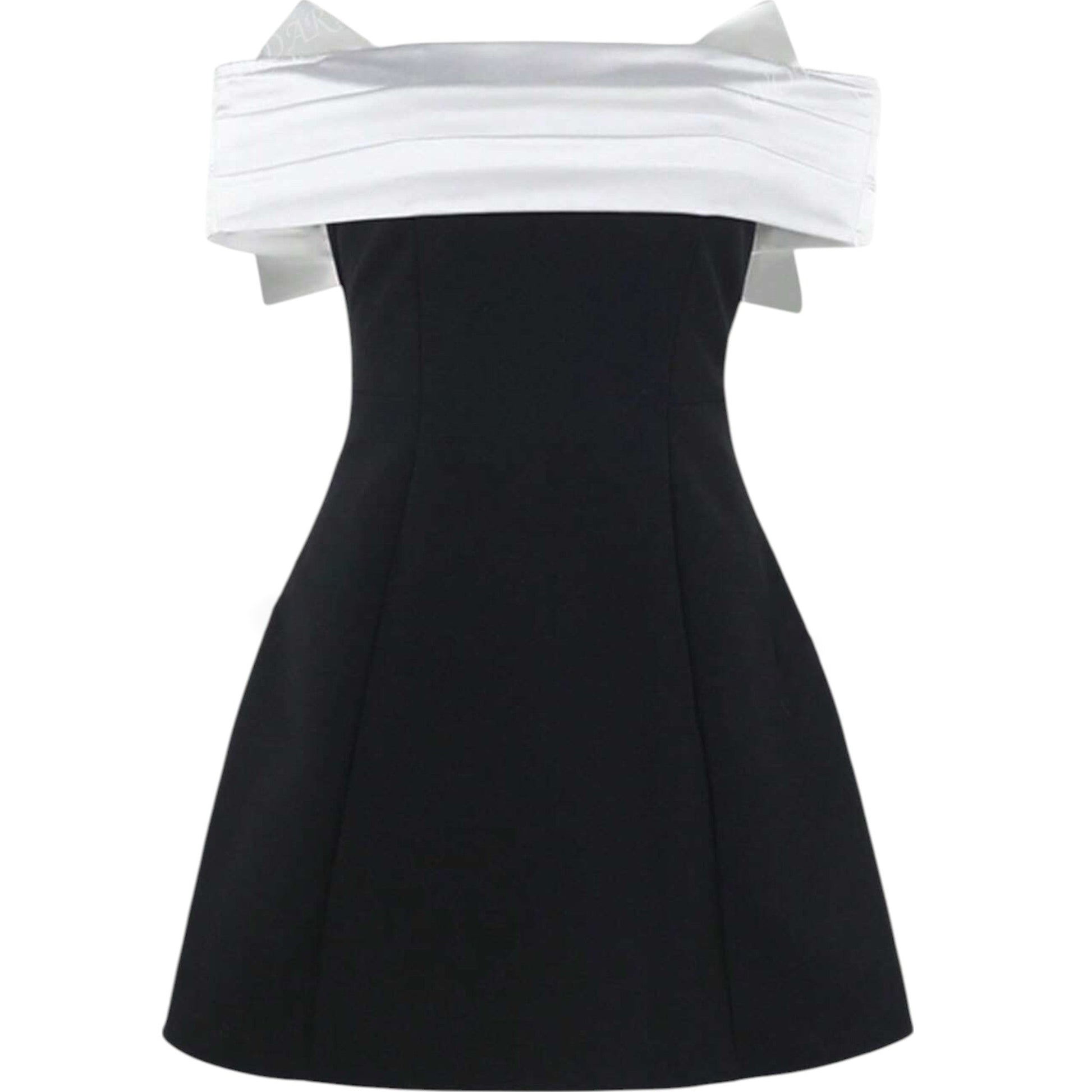 Címke nélküli, fekete-fehér, garbós, ujjatlan, mini ruha.