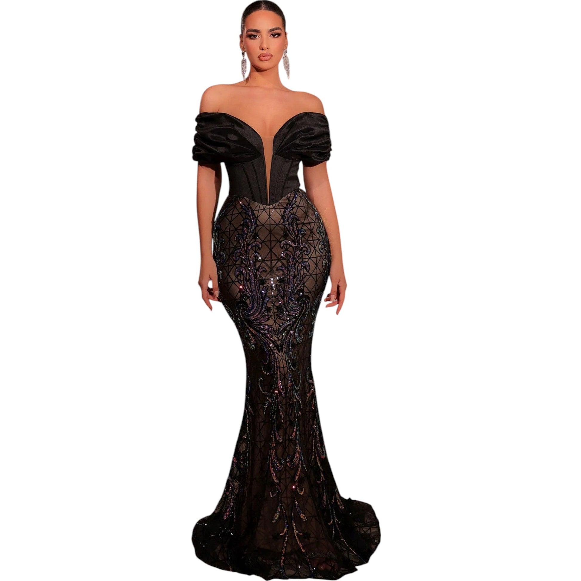 SHE fekete flitteres estélyi ruha