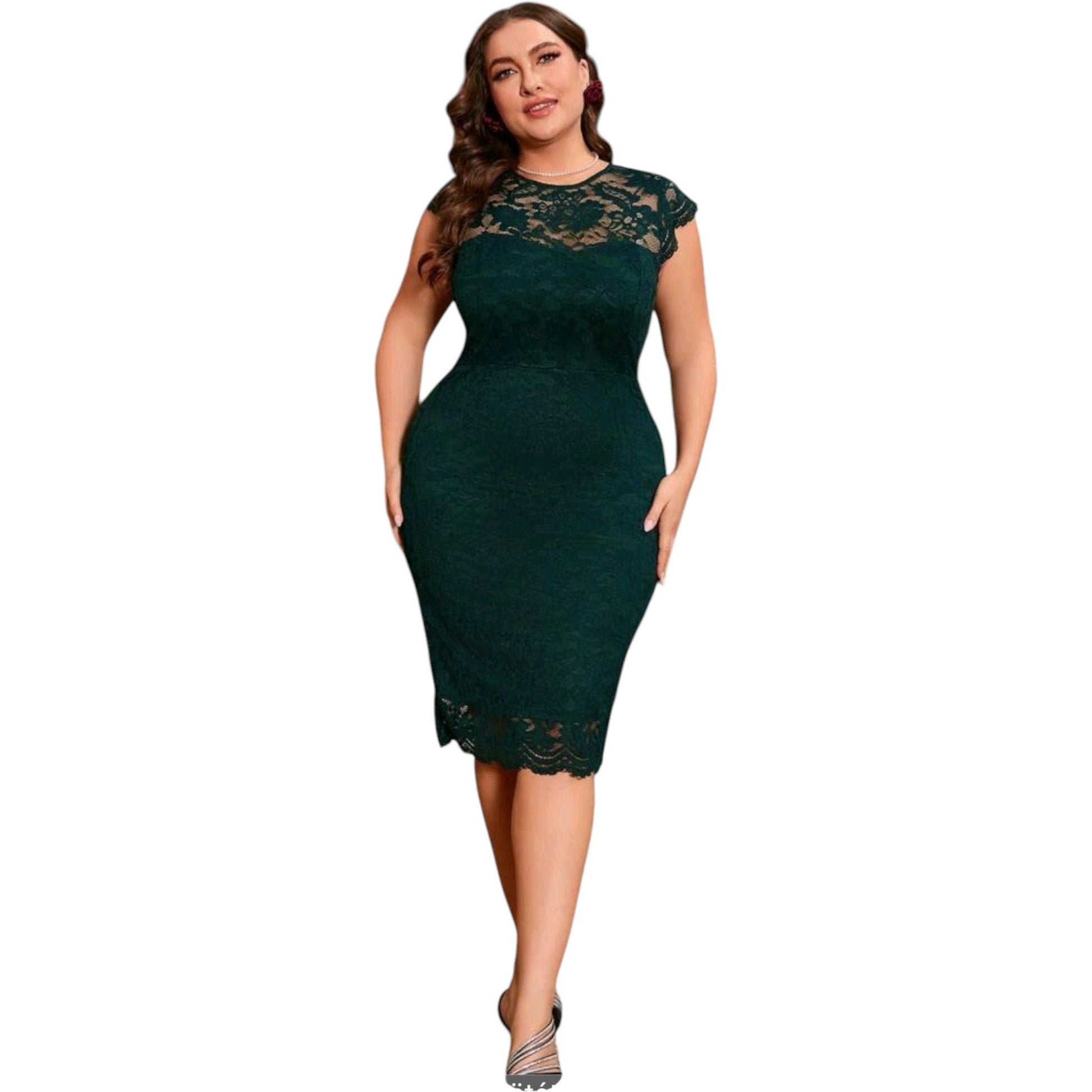 SHE sötétzöld csipkés ruha