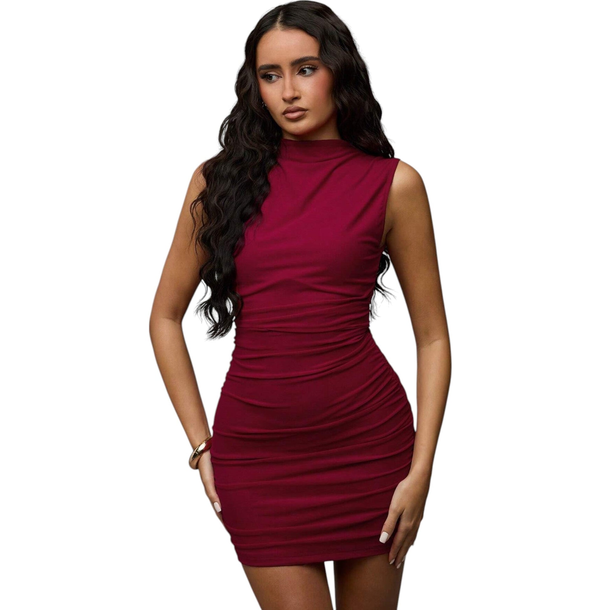 Címke nélküli, bordó, garbó nyakú, ujjatlan, ráncolt, testhezálló, mini.